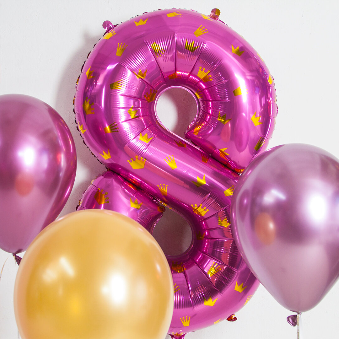 Купить Воздушный шар фольгированный Falali Цифра 8, Золотые короны, розовый, 86 см