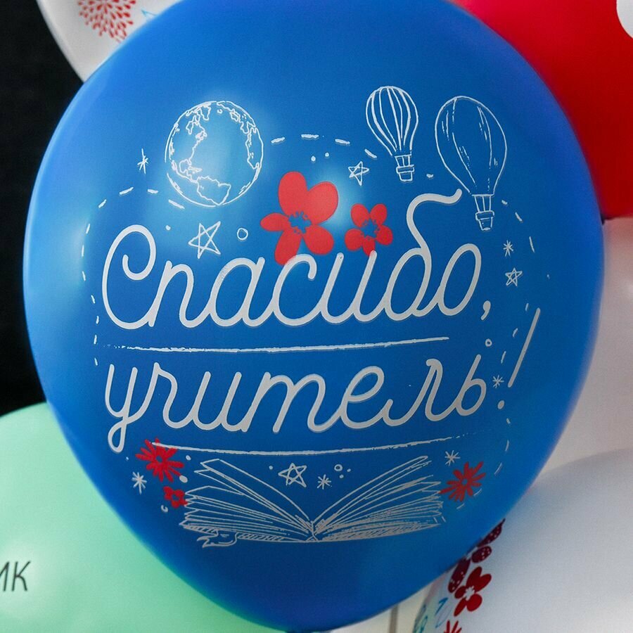 Купить Шары латексные "Учителю", 25 штук, 30 см. цвет - ассорти с рисунком и надписями