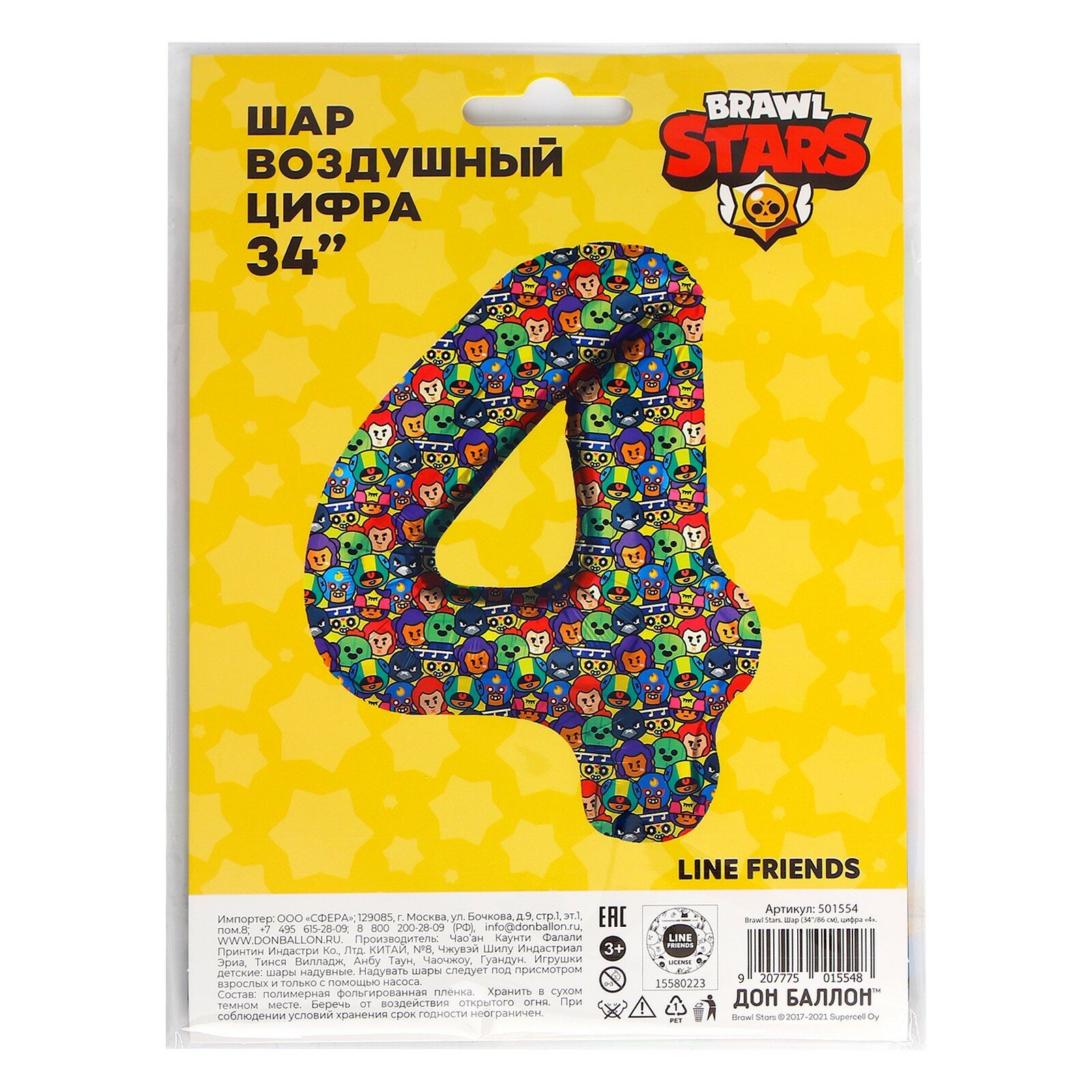 Воздушный шар фольгированный Falali Цифра 4, Brawl Stars, 86 см интересное: