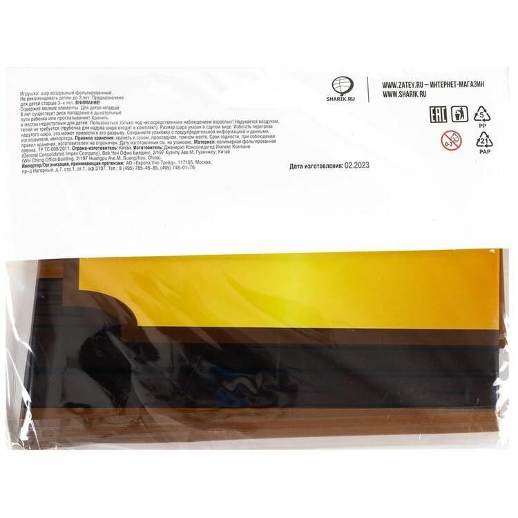 Кубок золотой в упаковке, фольгированный шар, 91 см, 1 шт.