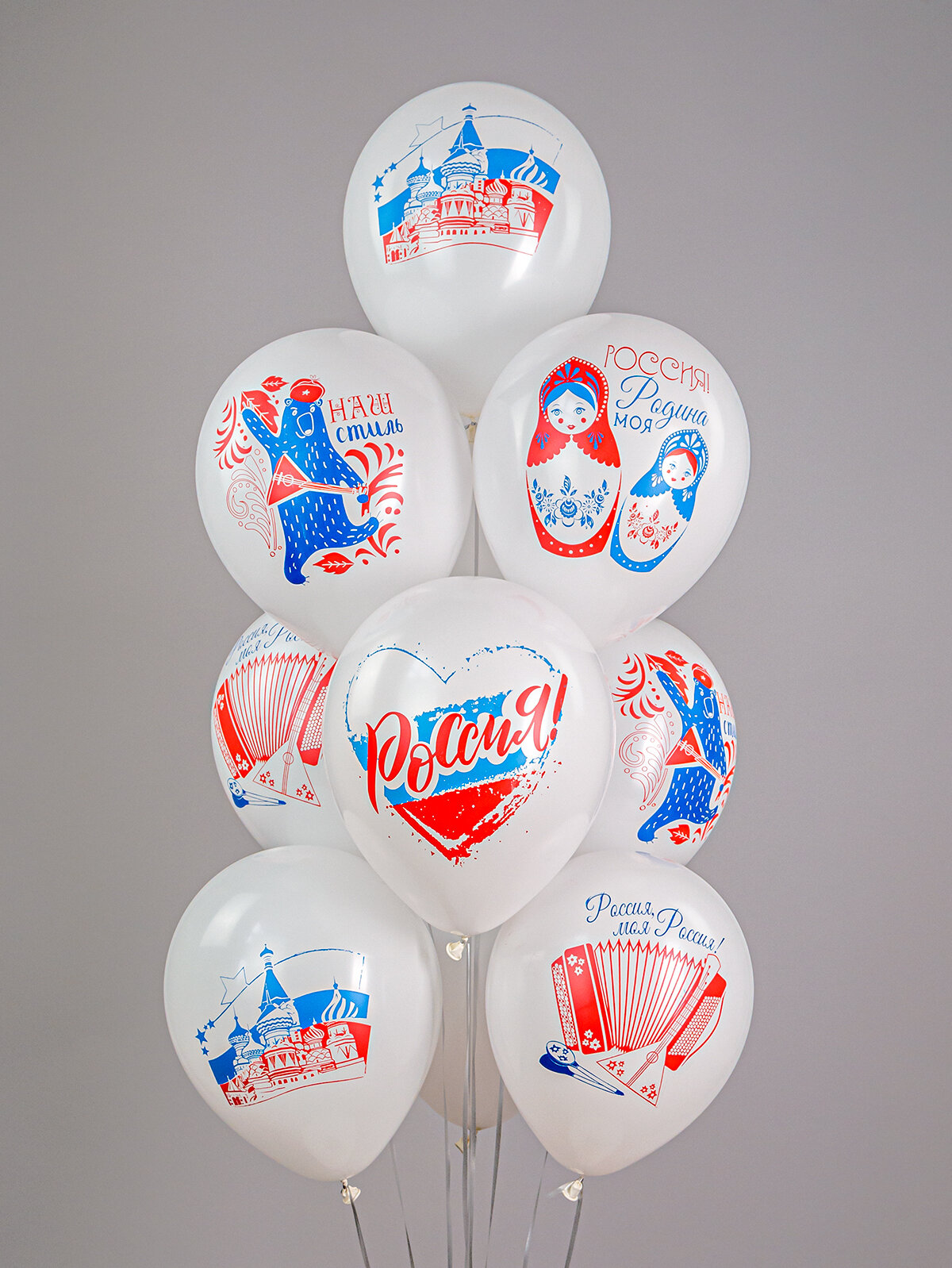 Купить Шарики воздушные "Россия", с рисунками, латекс, диаметр 30 см, набор 10шт.