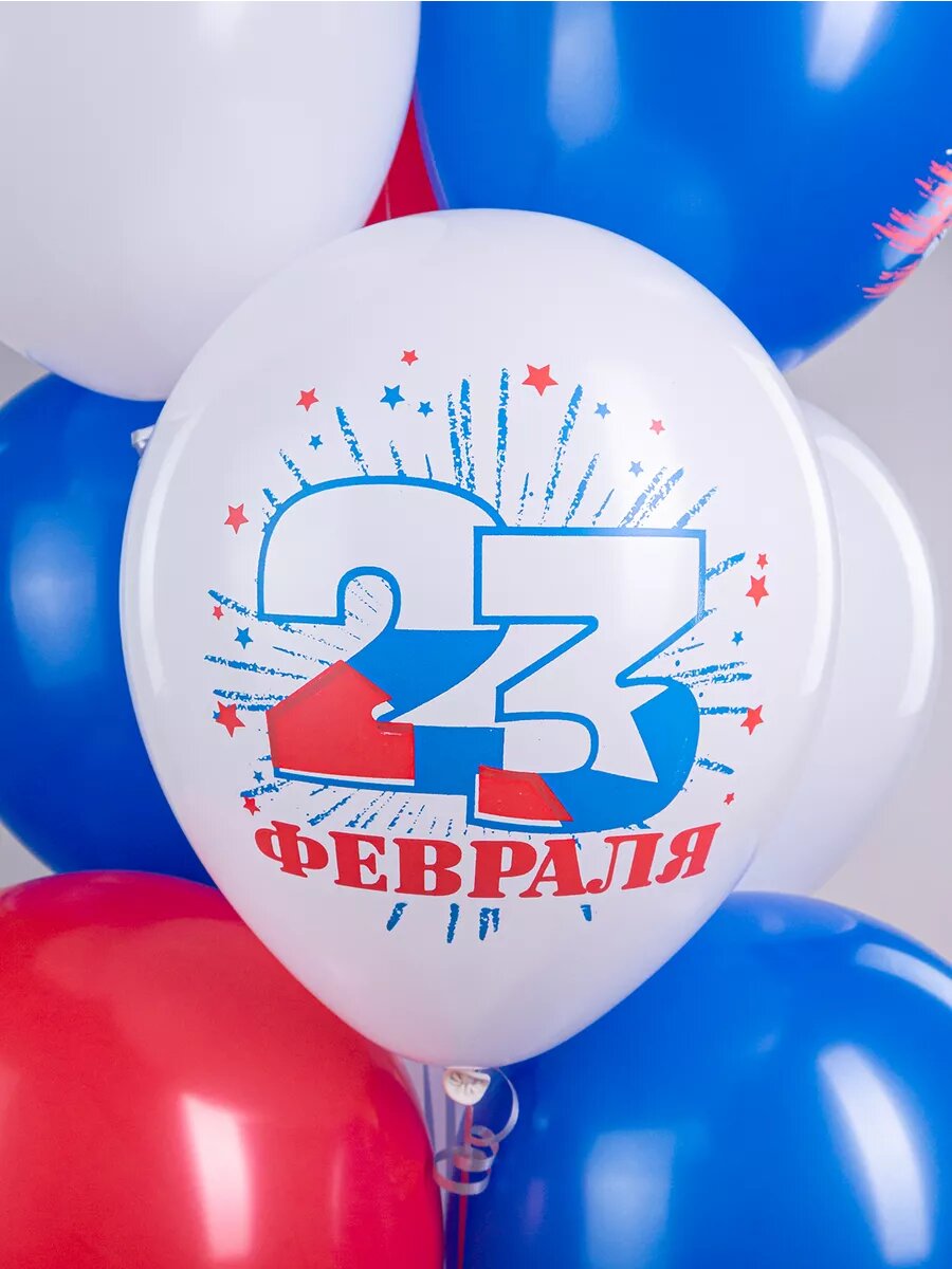 Купить Шарики водушные "23 Февраля! Триколор" 30см набор 10 штук 5 дизайнов