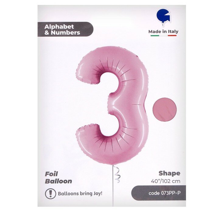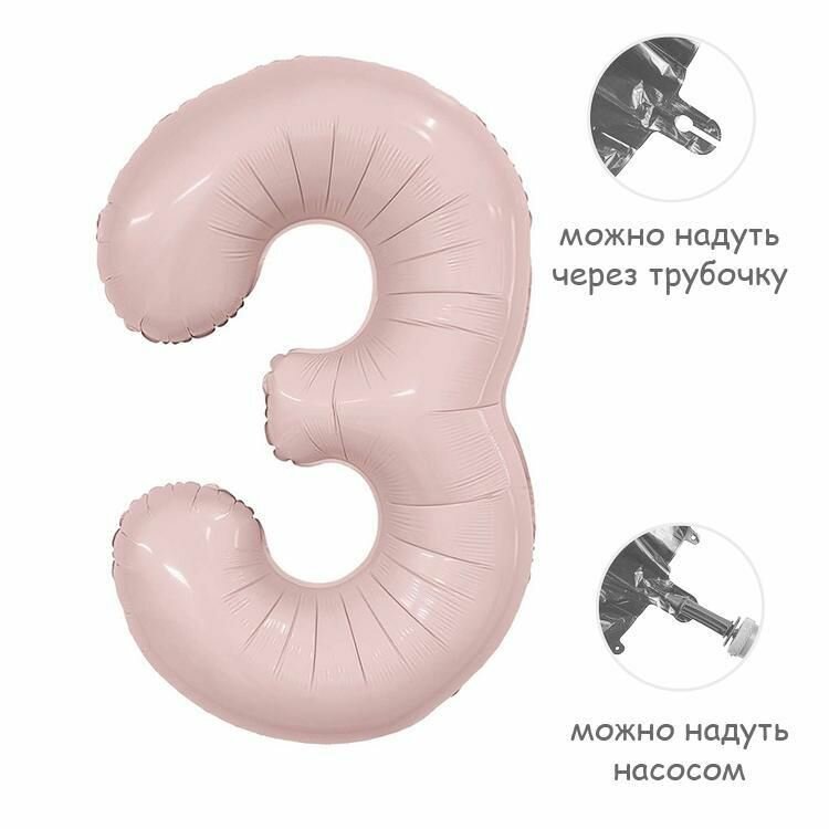 Воздушный шар цифра 3 пастель розовый 86см Италия интересное: