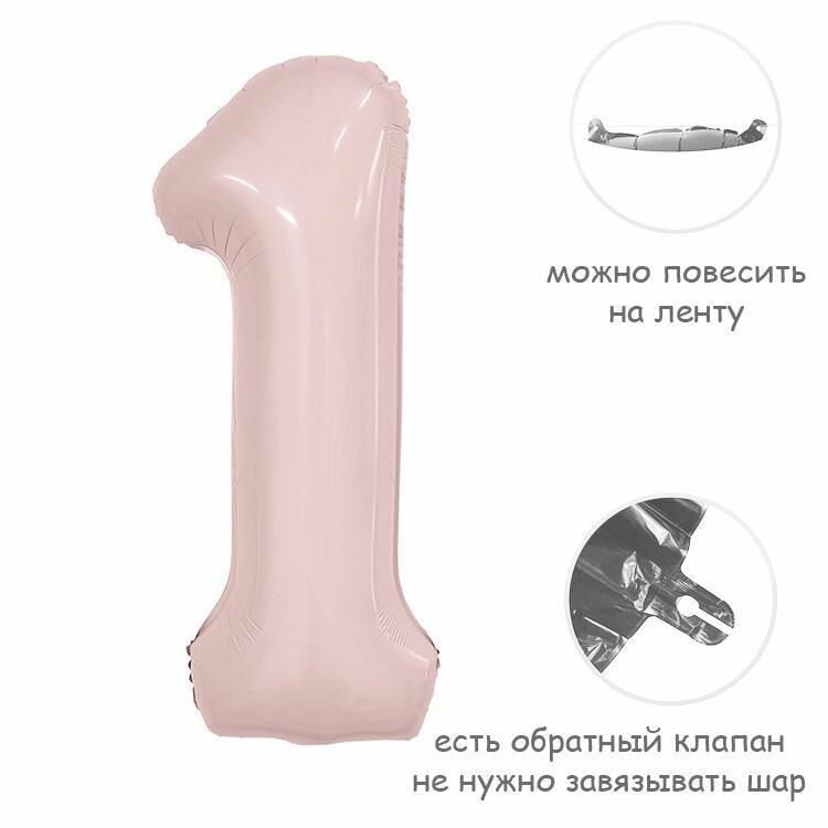 Воздушный шар цифра 1 пастель розовый 86см Италия интересное: