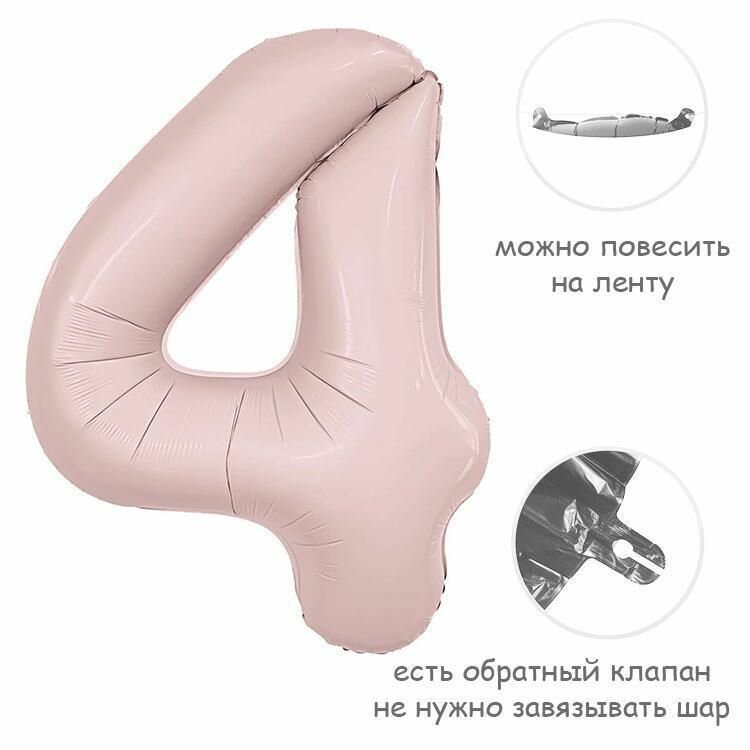 Воздушный шар цифра 4 пастель розовый 86см Италия интересное: