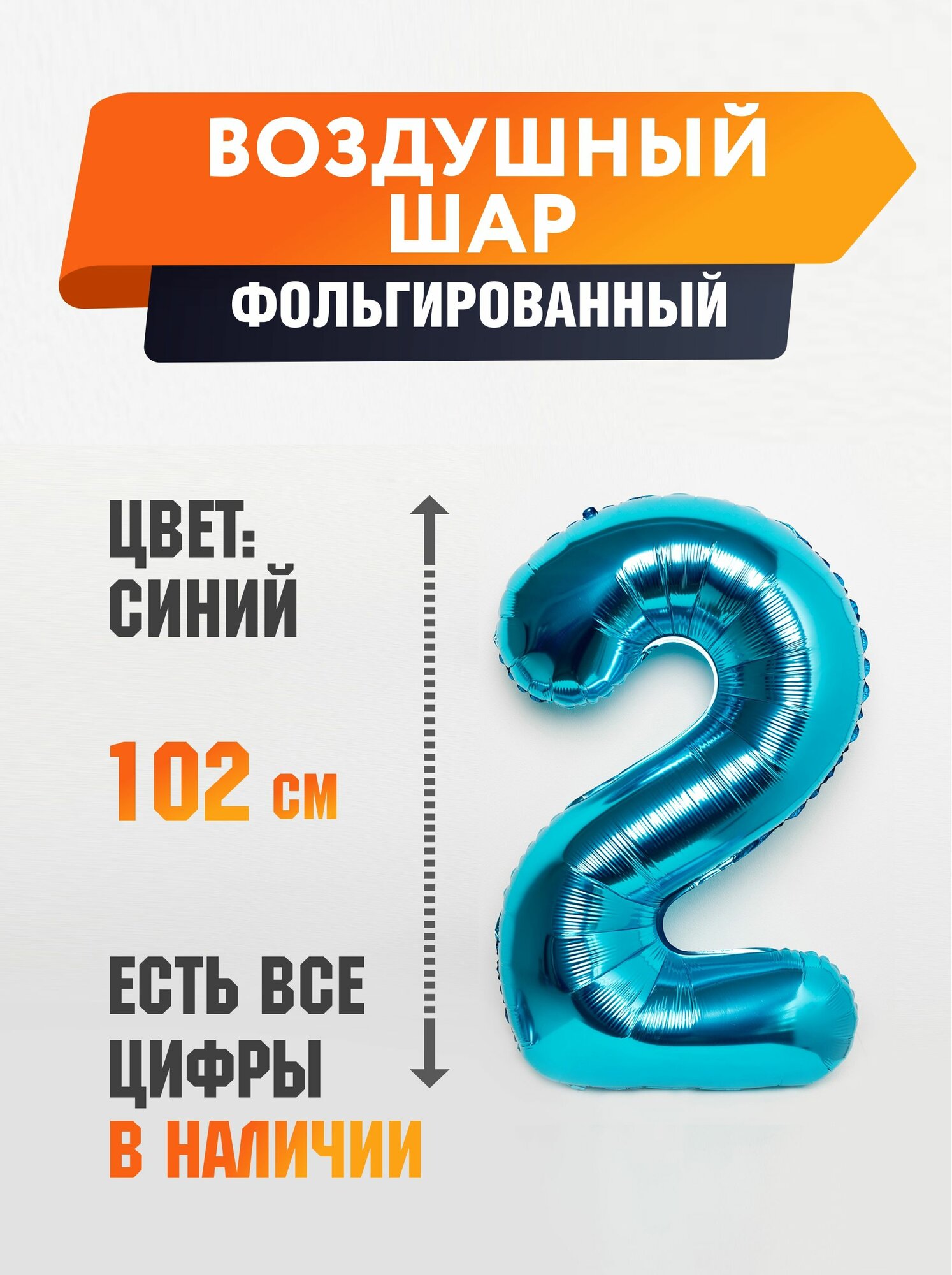 Купить Воздушный шар Shalex "Цифра 2", синий, 102 см, для украшения праздников