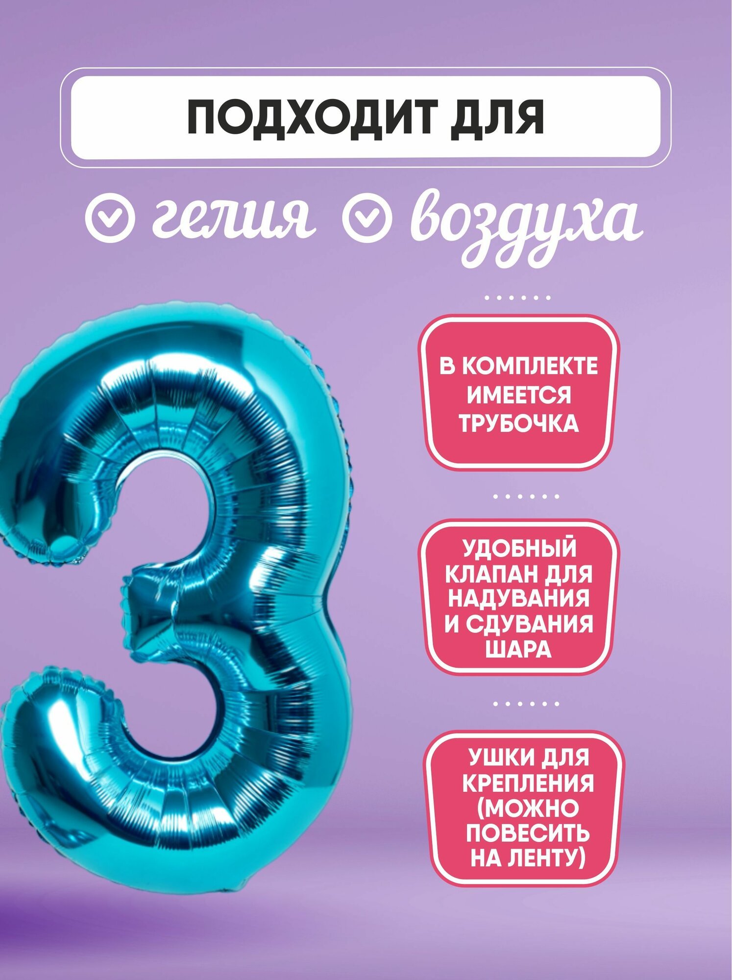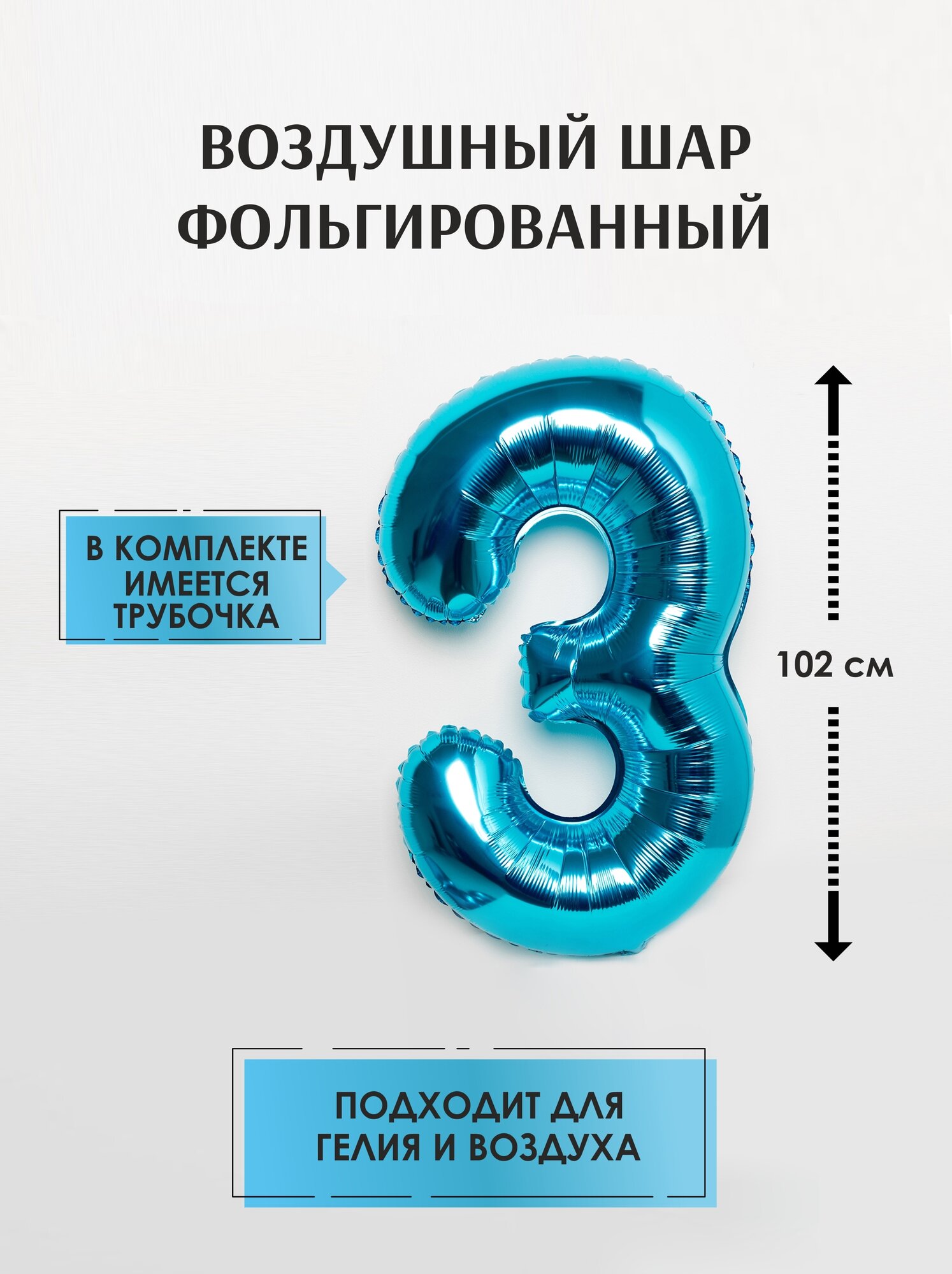 Купить Шар фольгированный цифра "3" синий 102 сантиметра, украшение на день рождения