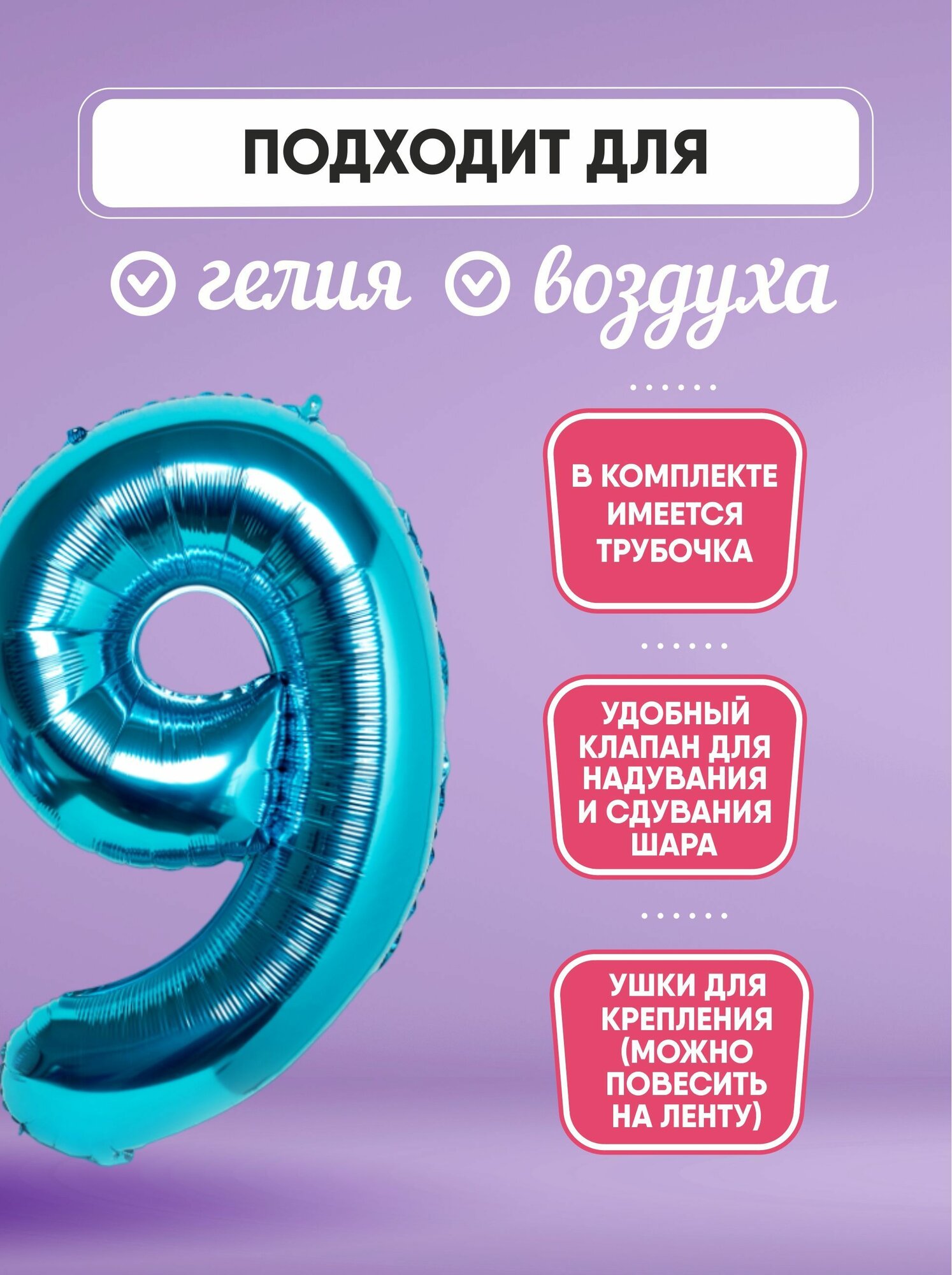 СохранитьВоздушный шар Shalex "Цифра 9", синий, 102 см, для украшения праздников интересное: