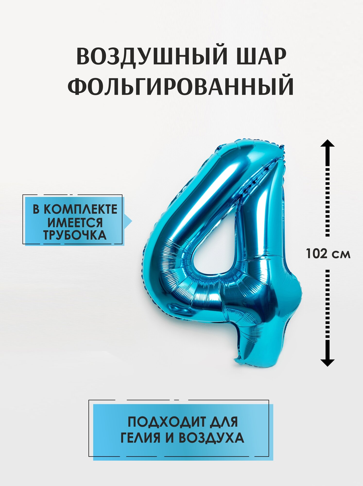 Купить Воздушный шар Shalex "Цифра 4", синий, 102 см, для украшения праздников