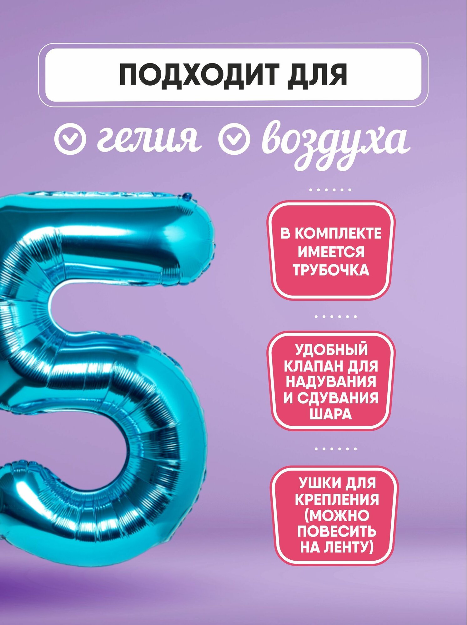 СохранитьВоздушный шар Shalex "Цифра 5", синий, 102 см, для украшения праздников интересное: