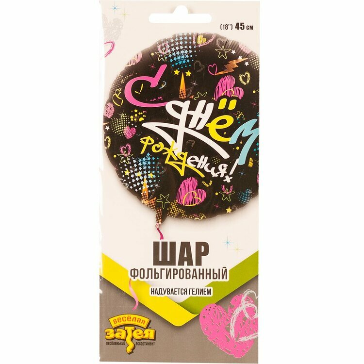 Фольгированный шар С ДР кароч, 45 см, ненадутый
