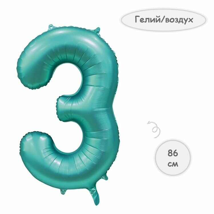 Купить Воздушный шар цифра 3 сатин тиффани 86см Китай