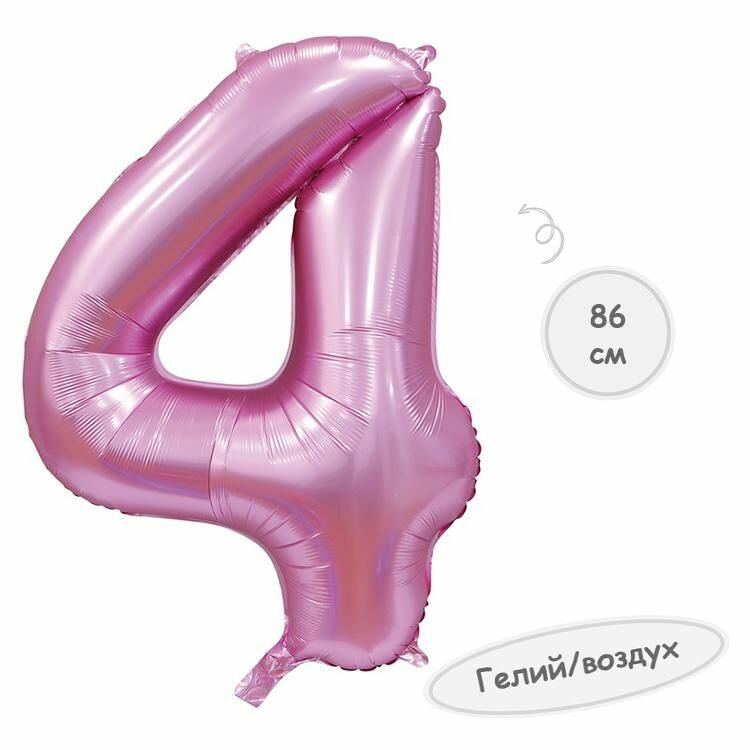 Купить Воздушный шар цифра 4 сатин розовый 86см Китай