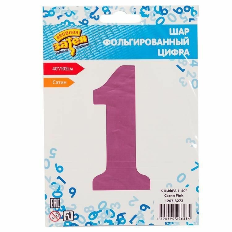 Купить Воздушный шар цифра 1 сатин розовый 86см Китай