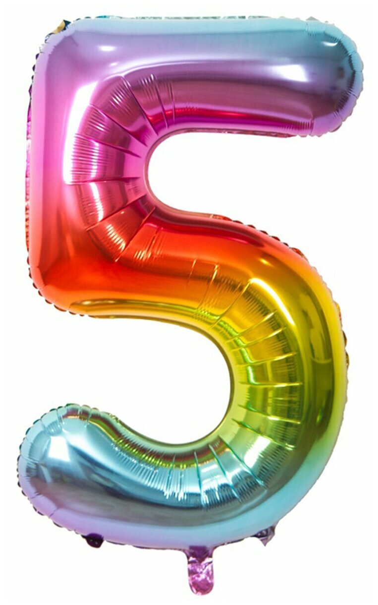 Купить Воздушный шар цифра 5 металлик радуга 86см Китай