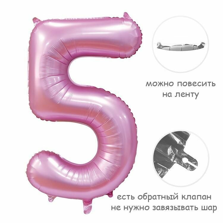 Купить Воздушный шар цифра 5 сатин розовый 86см Китай