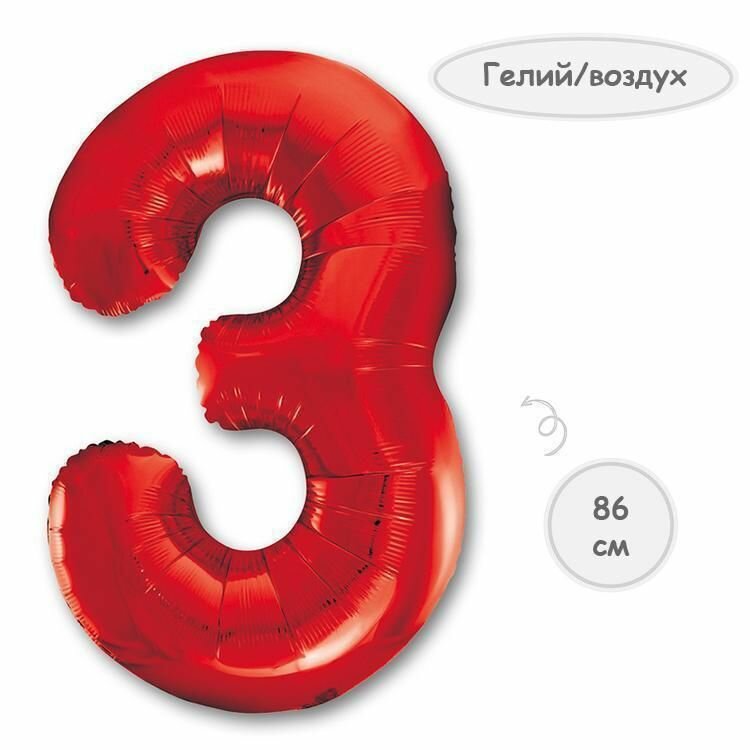 Купить Воздушный шар цифра 3 красный 86см Китай