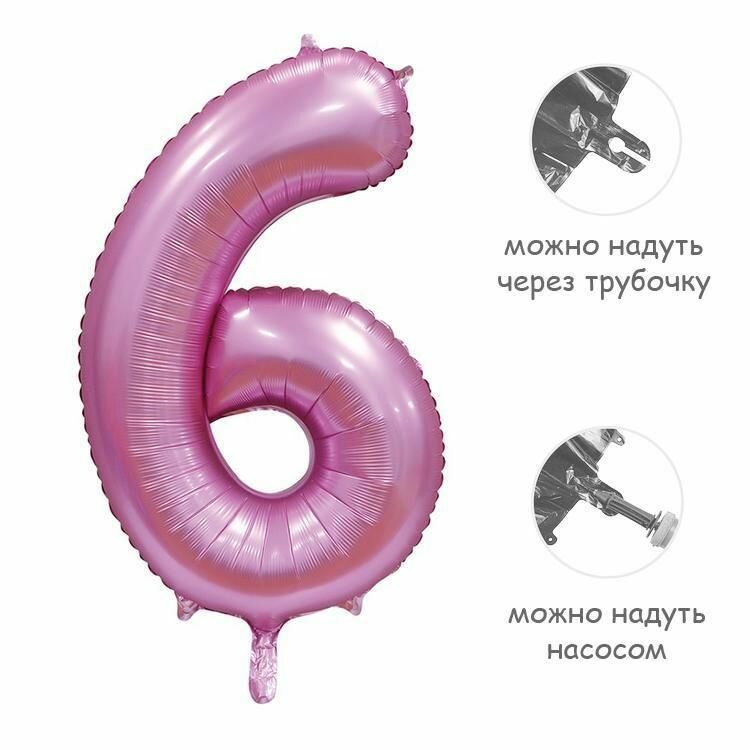 Купить Воздушный шар цифра 6 сатин розовый 86см Китай