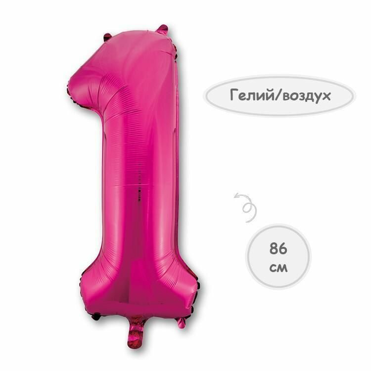 Купить Воздушный шар цифра 1 фуксия 86см Китай