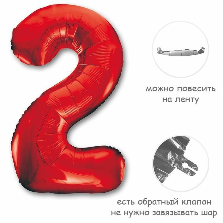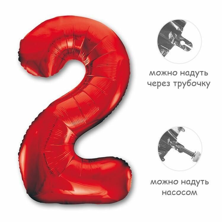 Купить Воздушный шар цифра 2 красный 86см Китай