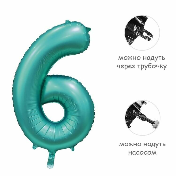 Купить Воздушный шар цифра 6 сатин тиффани 86см Китай