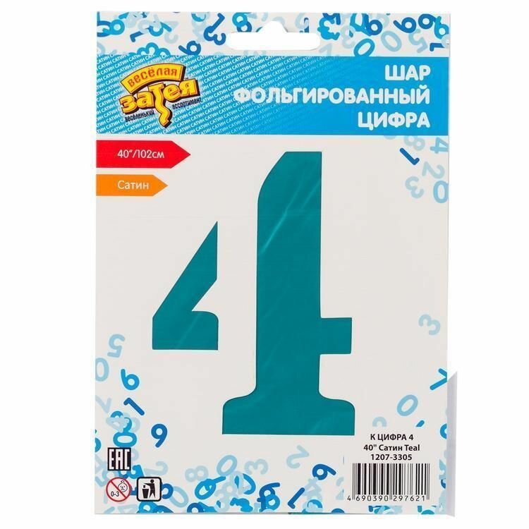 Купить Воздушный шар цифра 4 сатин тиффани 86см Китай