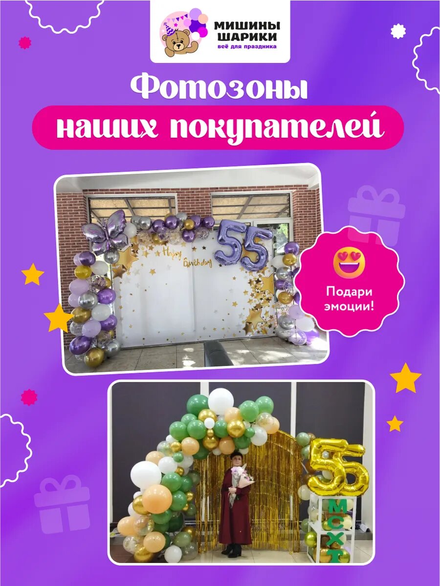 Ниже Вы можете прочитать отзывы на Набор воздушных шаров для фотозоны на день рождения с цифрами 55 лет, ознакомится с подробными характеристиками, посмотреть интересные обзоры и фотографии на Набор воздушных шаров для фотозоны на день рождения с цифрами 55 лет.