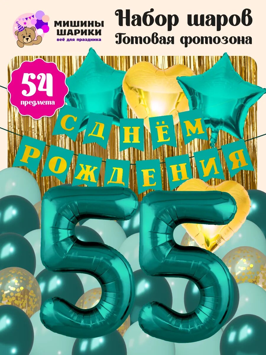 Купить Набор воздушных шаров для фотозоны на день рождения с цифрами 55 лет