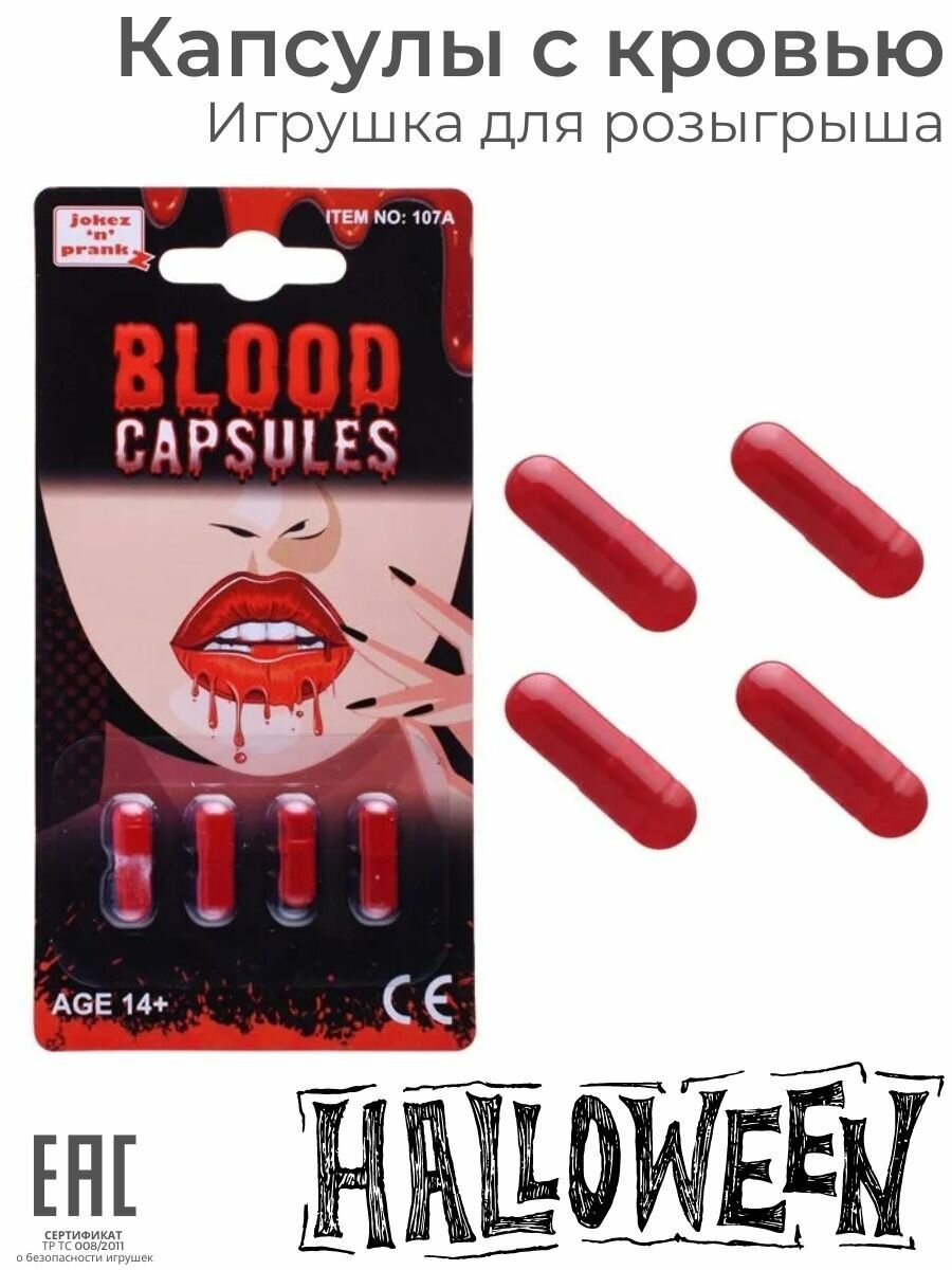 Купить Аквагрим прикол для розыгрышей Капсулы с кровью / Искусственная кровь на Halloween Хеллоуин