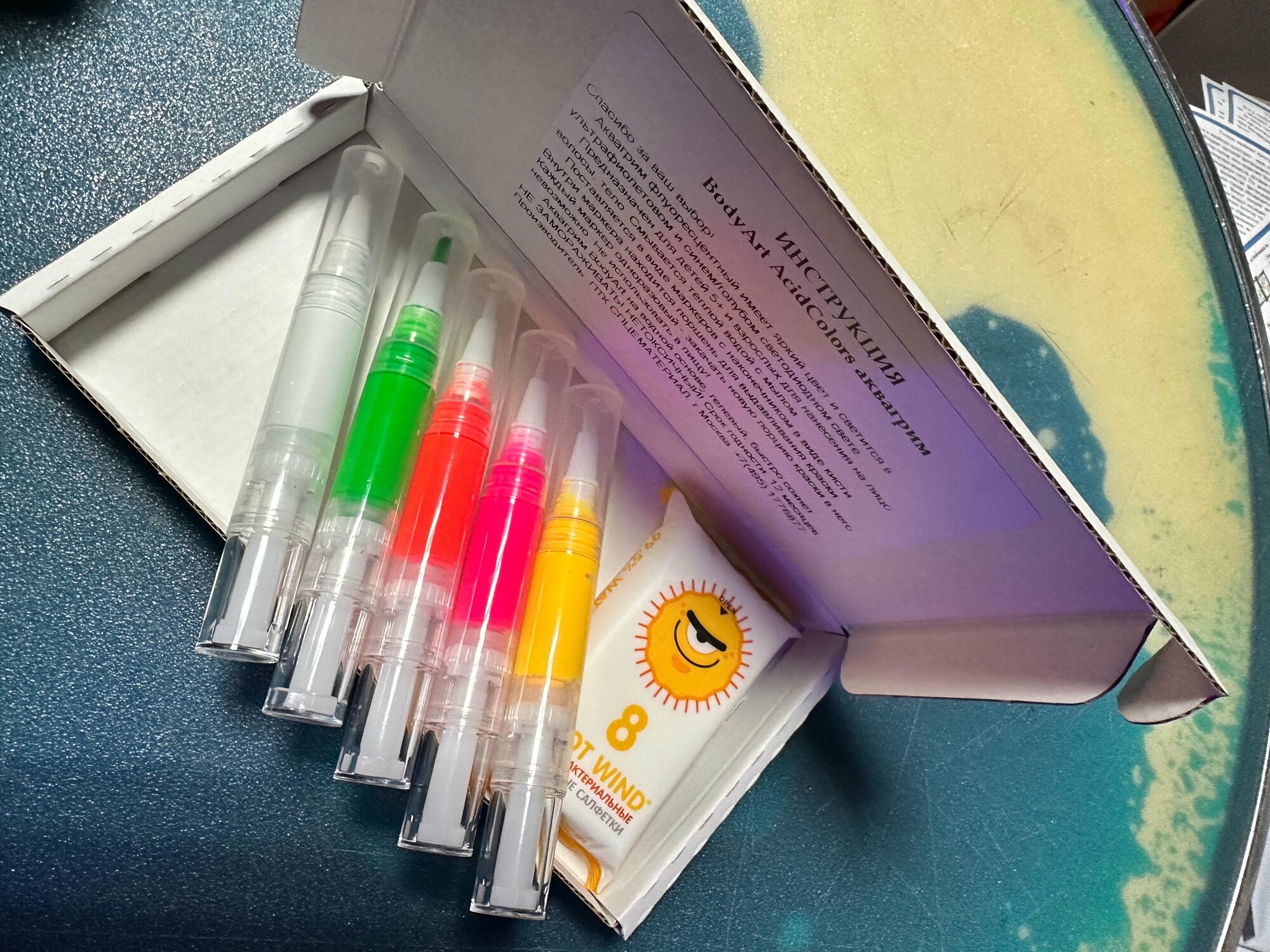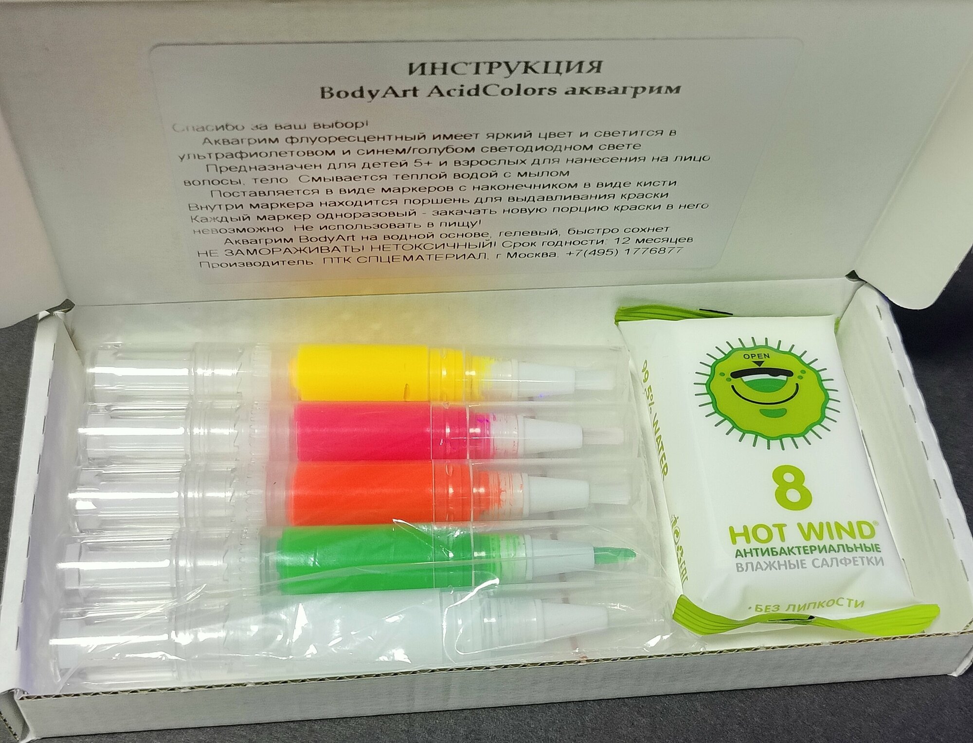 Флуоресцентный аквагрим AcidColors А01 набор маркеров 5 цветов по 10 мл. интересное: