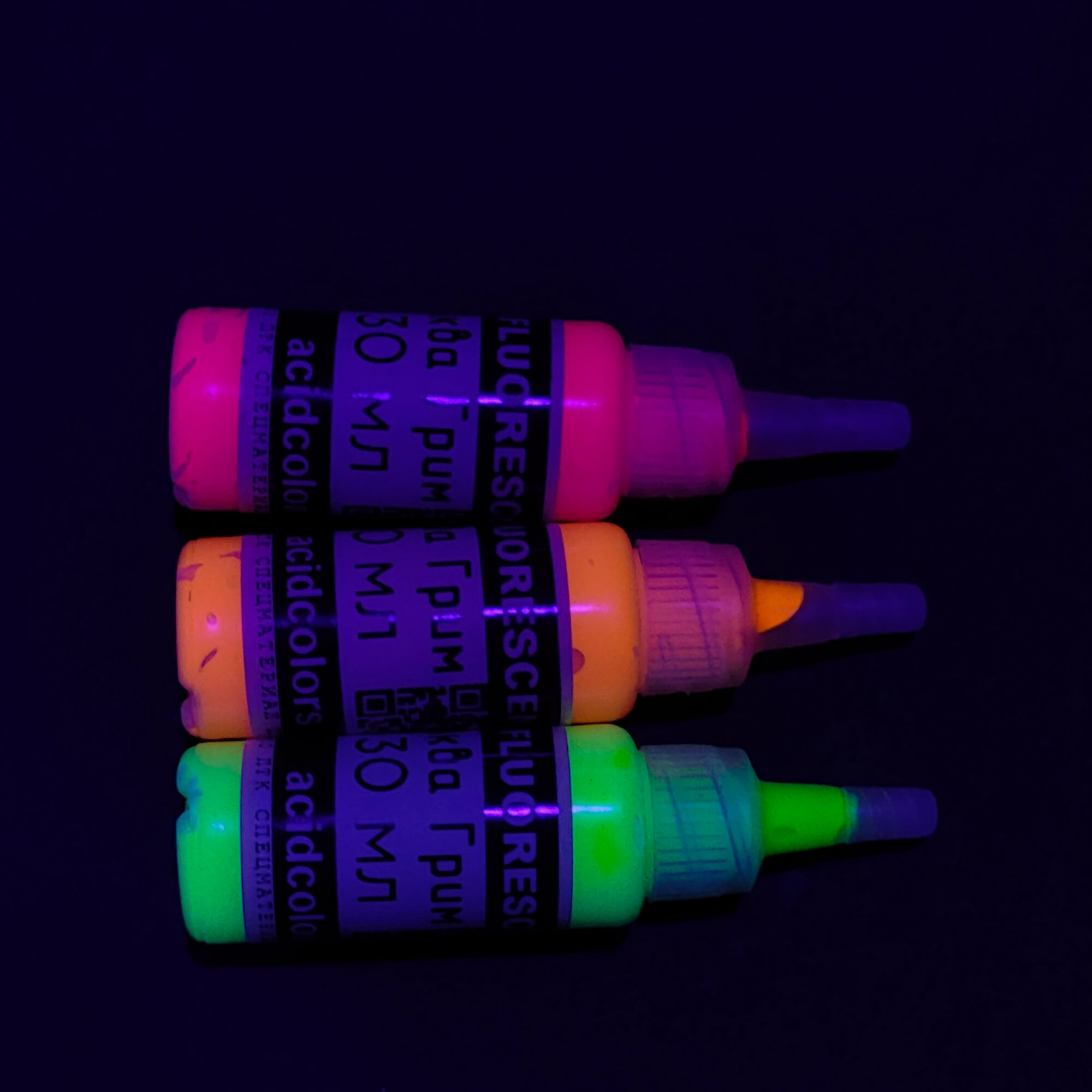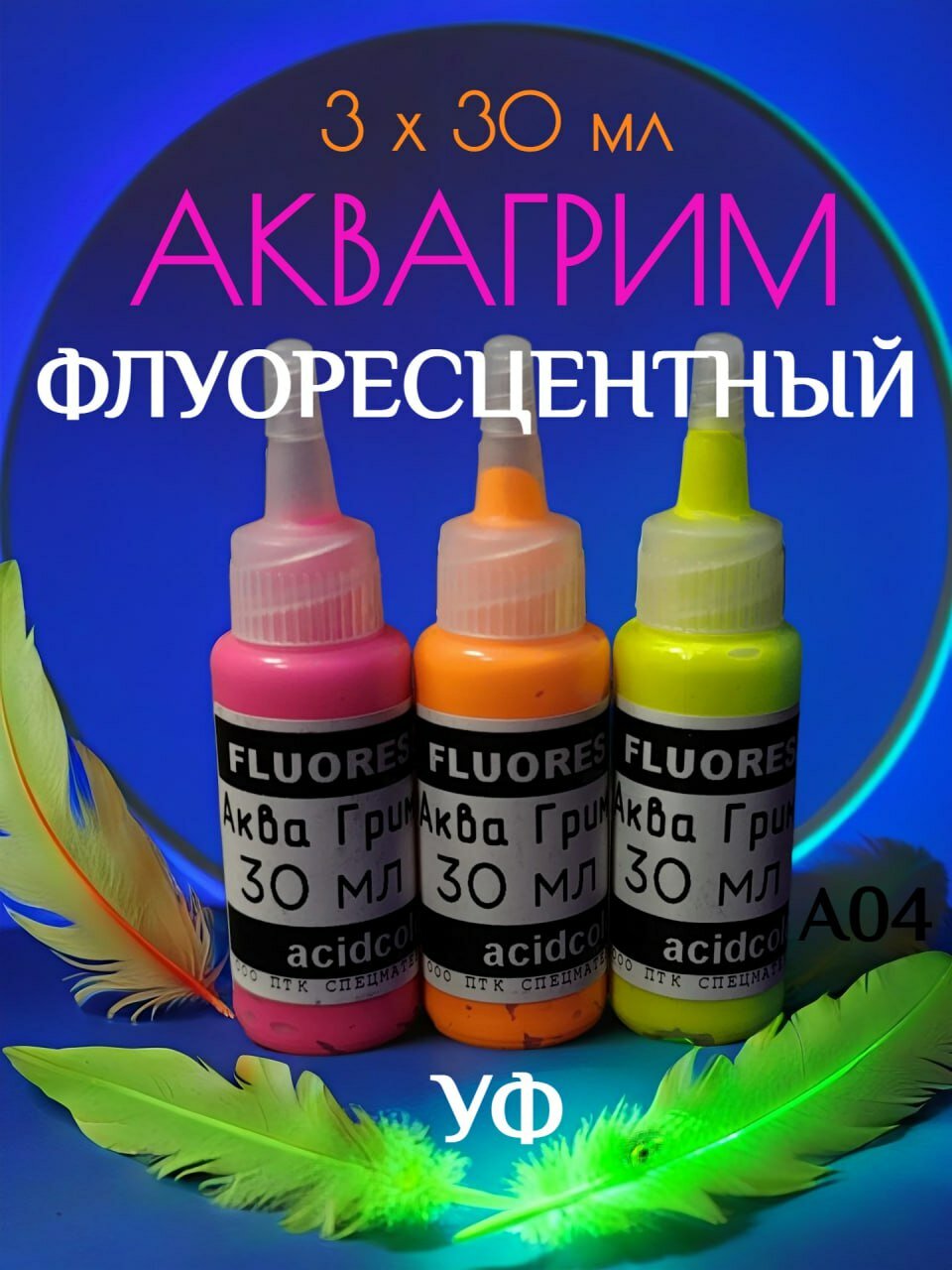 Флуоресцентный аквагрим AcidColors А04 набор 3 цвета по 30 мл. интересное: