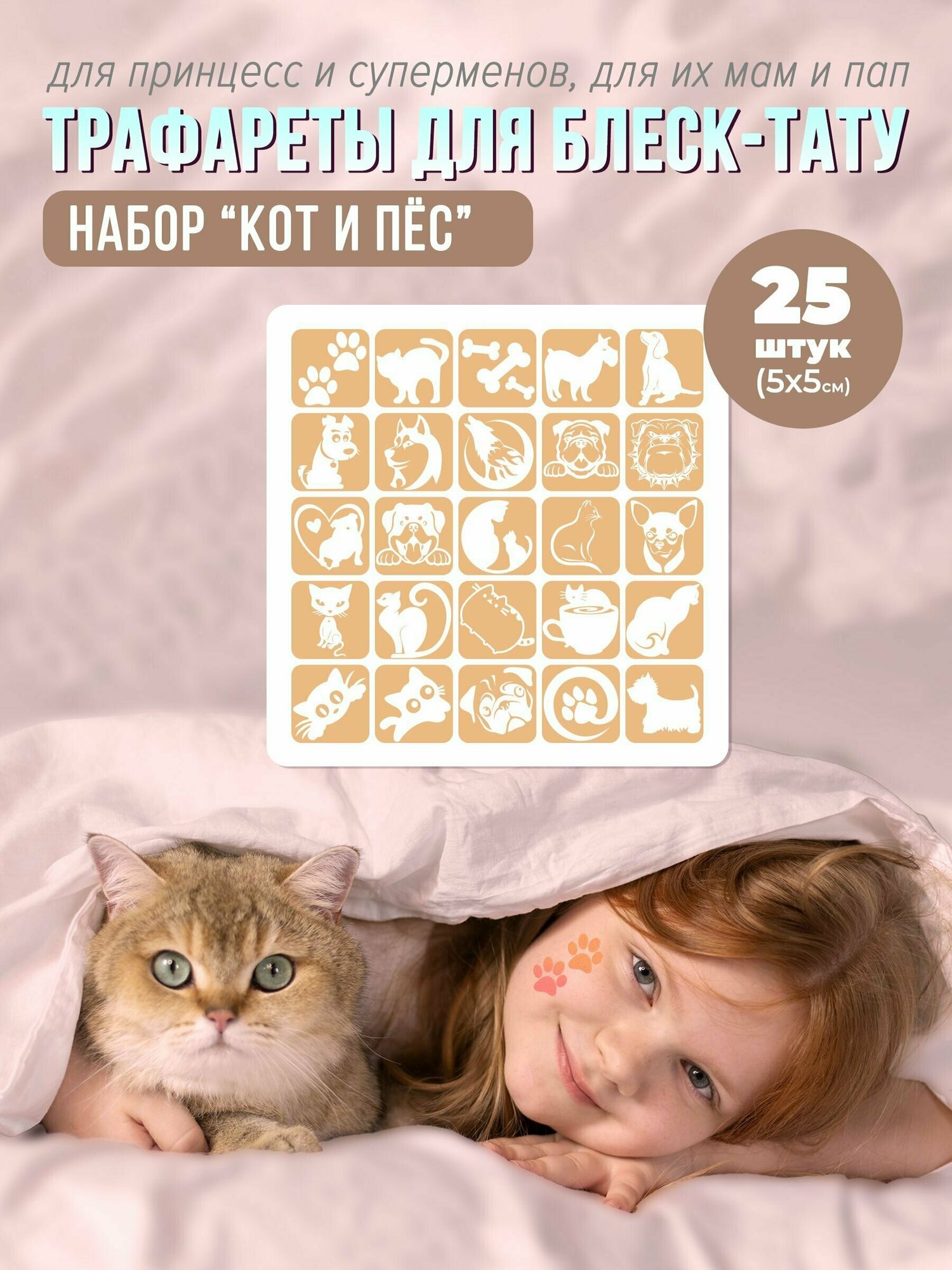 Купить Трафареты для блеск тату , набор Кот и Пёс