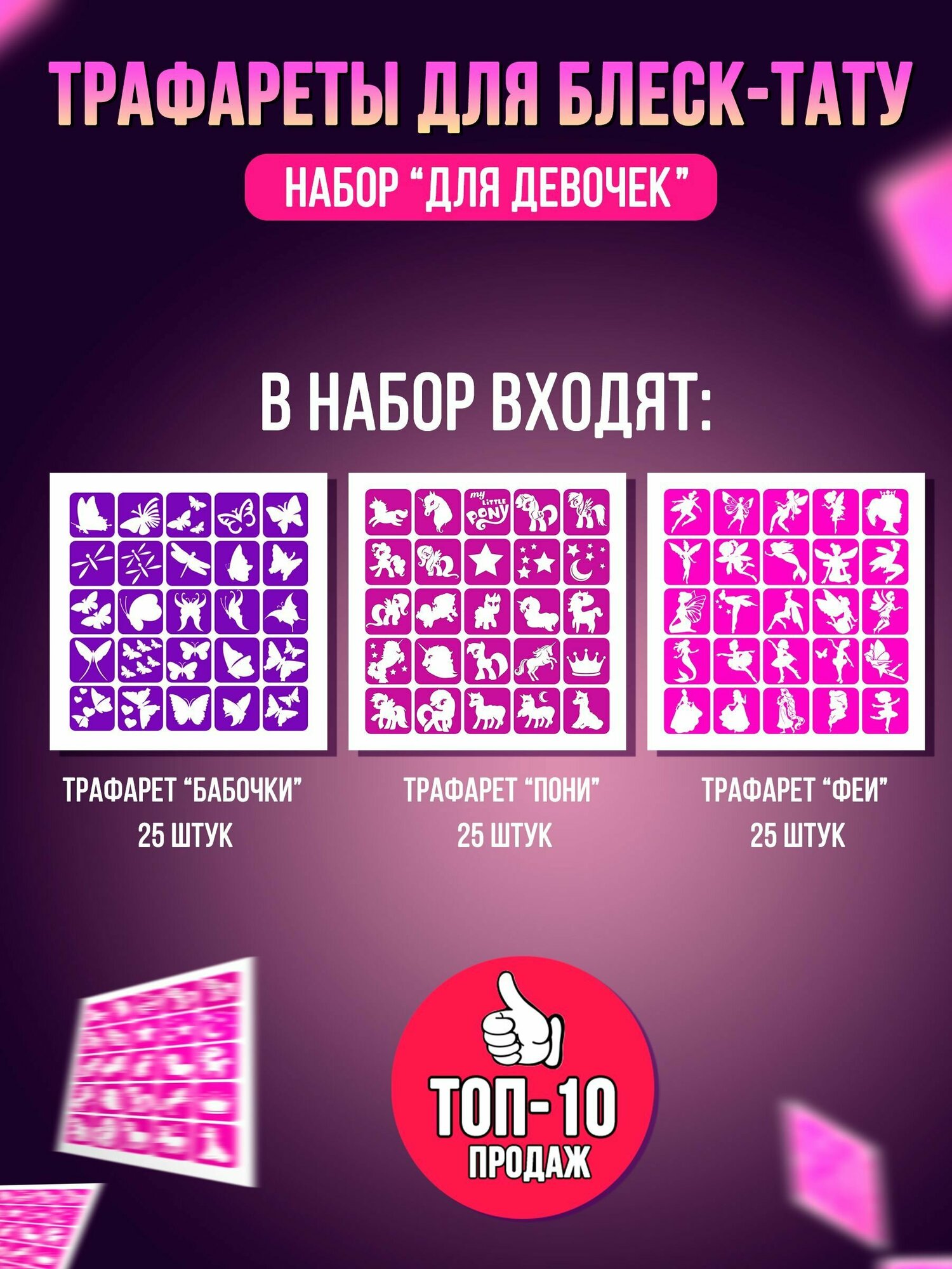 Купить Трафареты для блеск тату , набор для Девочек