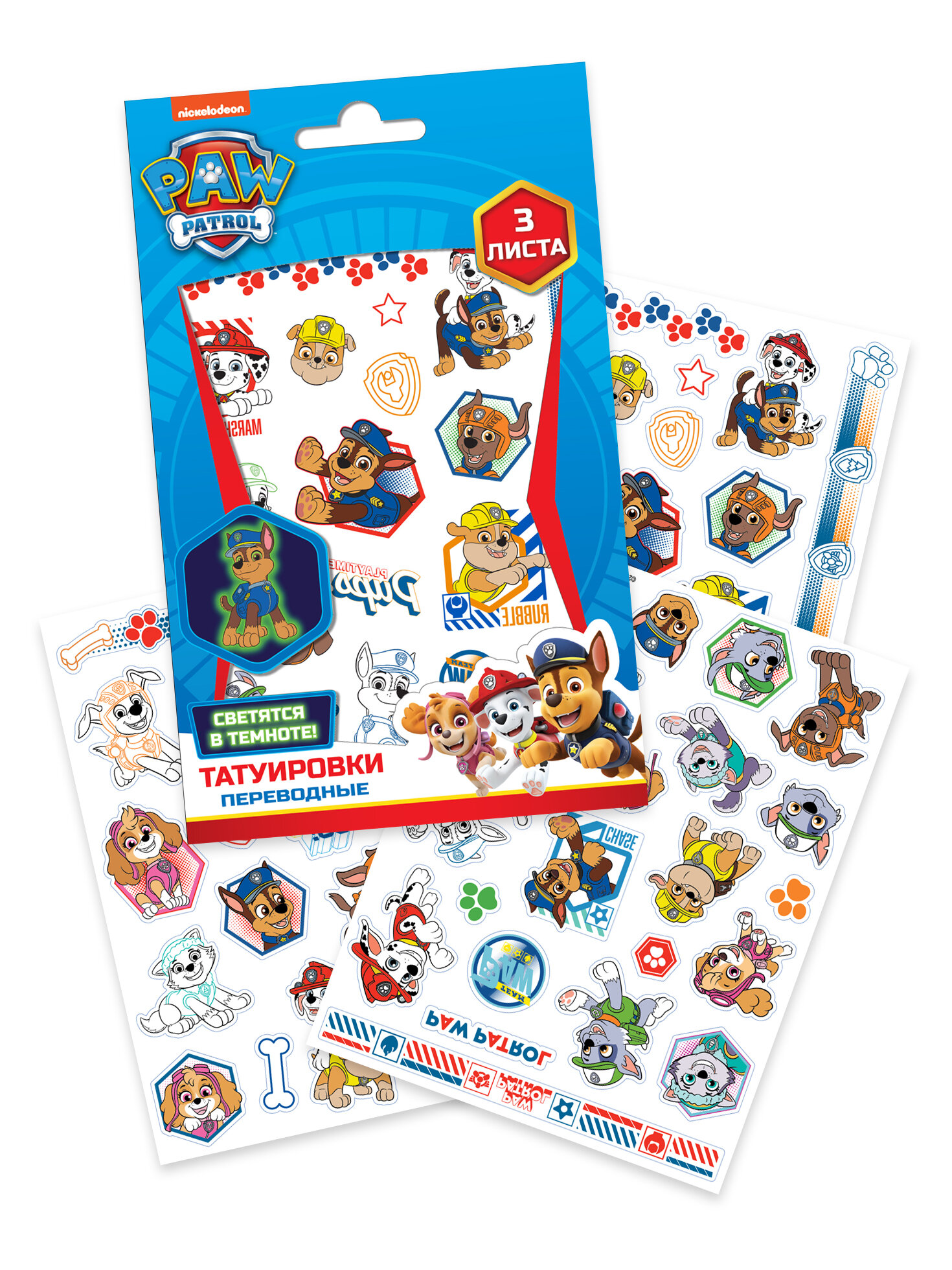 Купить Наклейки - татуировки светящиеся "Щенячий патруль", 3 листа, диз. 4 (boys) ND Play