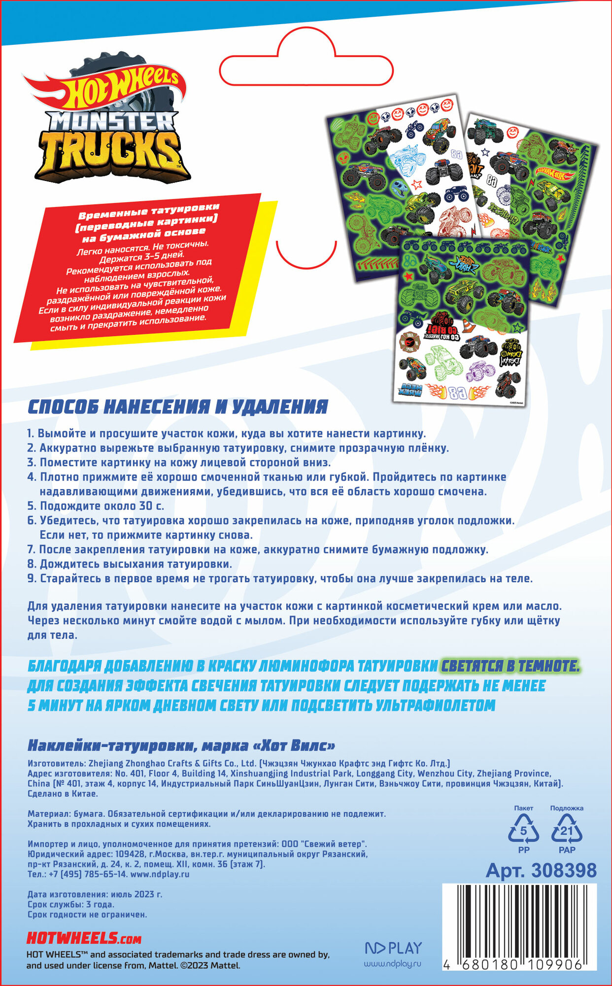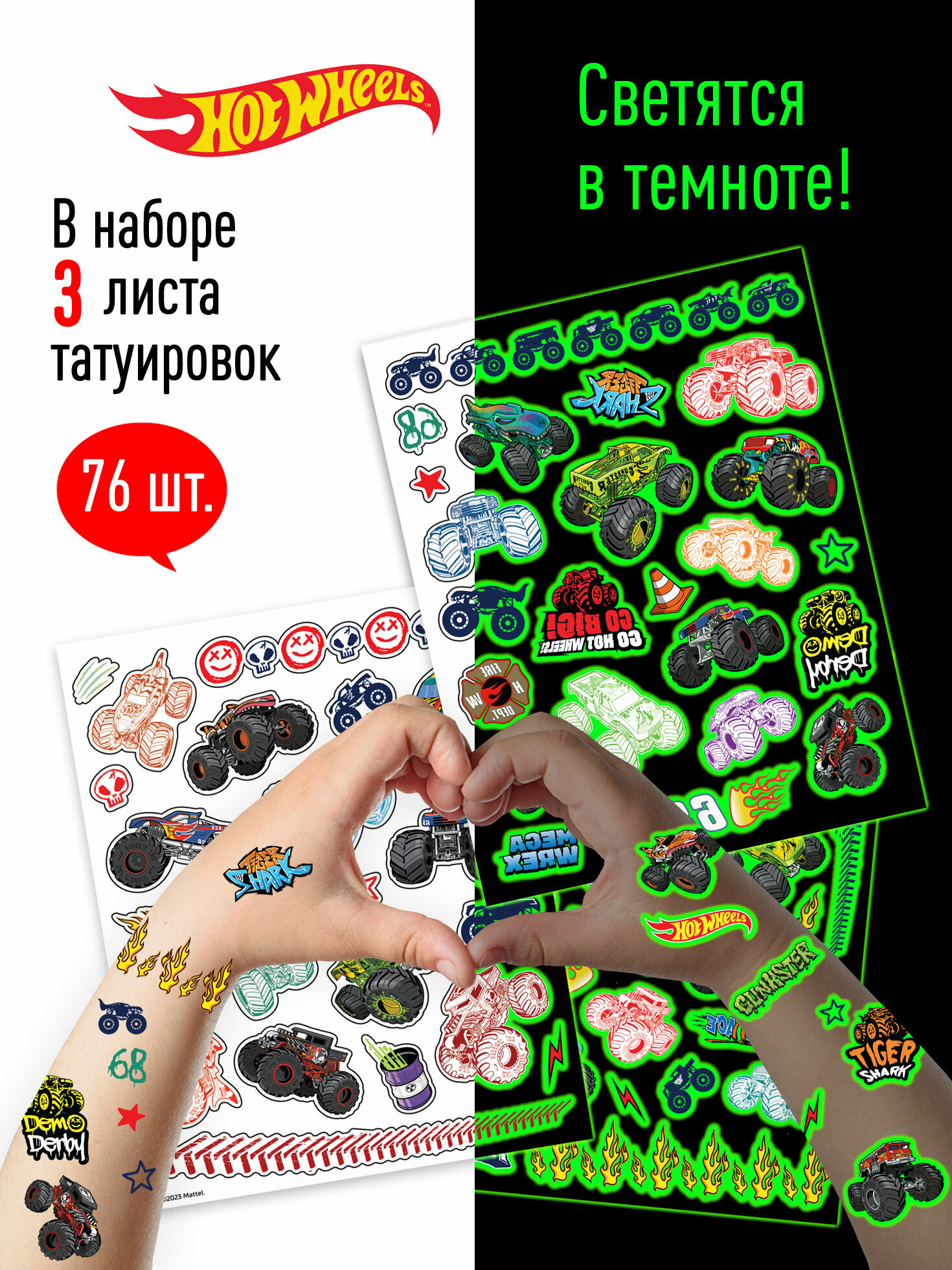 Купить Наклейки - татуировки светящиеся "Hot Wheels", 3 листа, диз. 1 ND Play