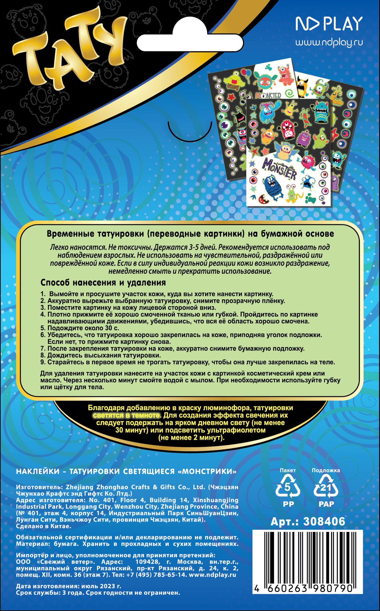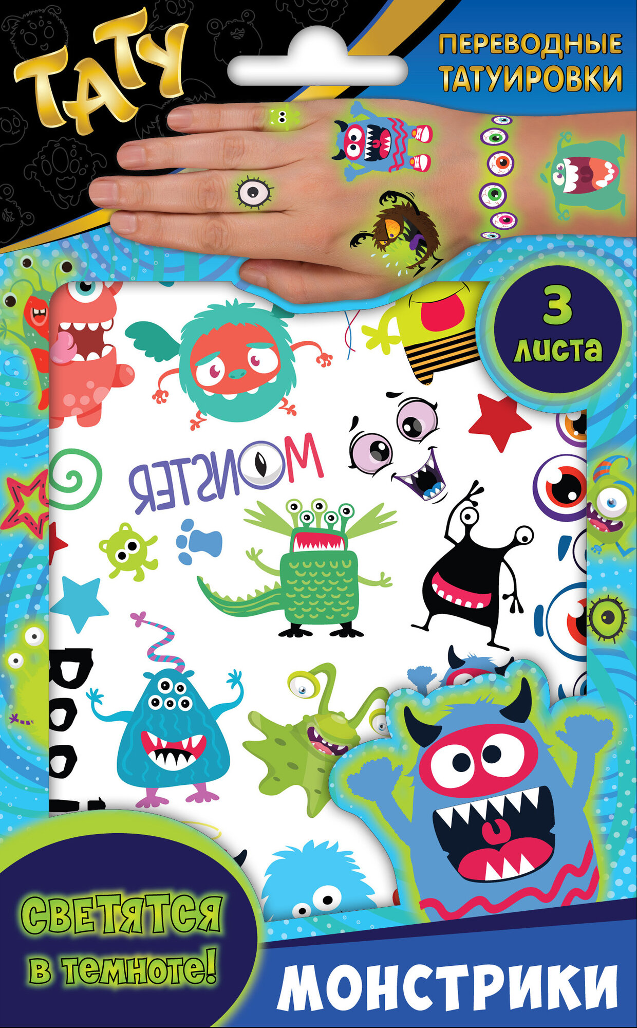 Купить Наклейки - татуировки светящиеся "Монстрики", 3 листа ND Play