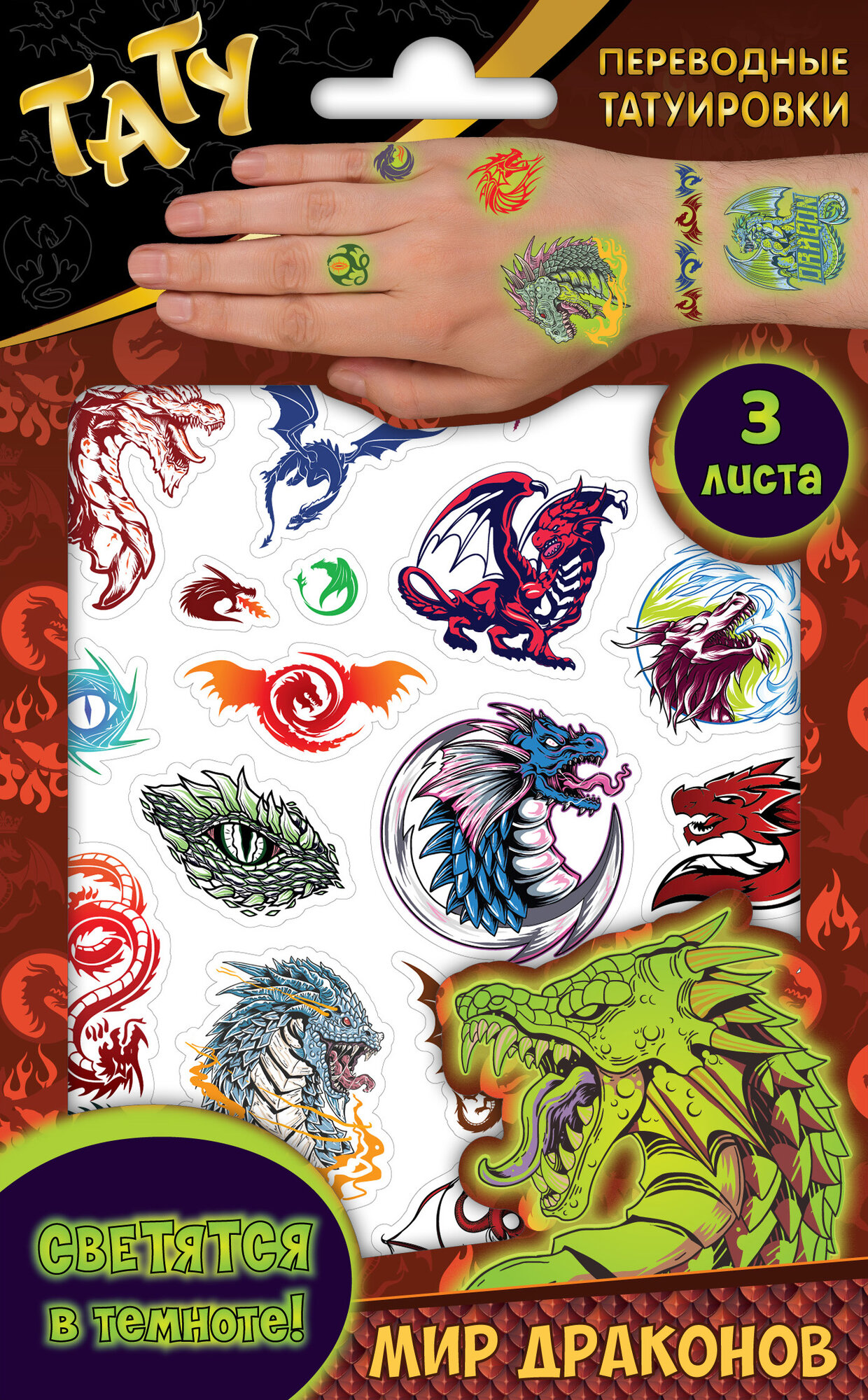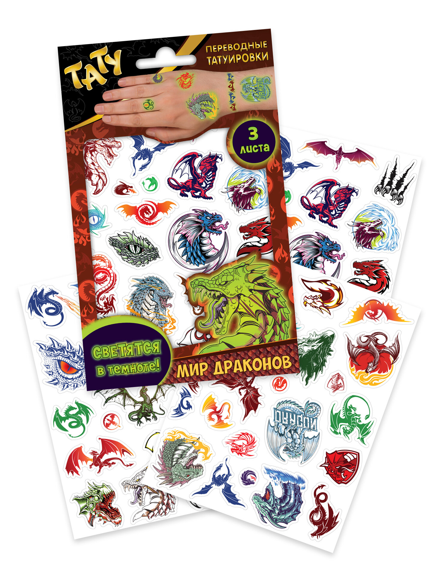 Купить Наклейки - татуировки светящиеся "Мир драконов", 3 листа ND Play