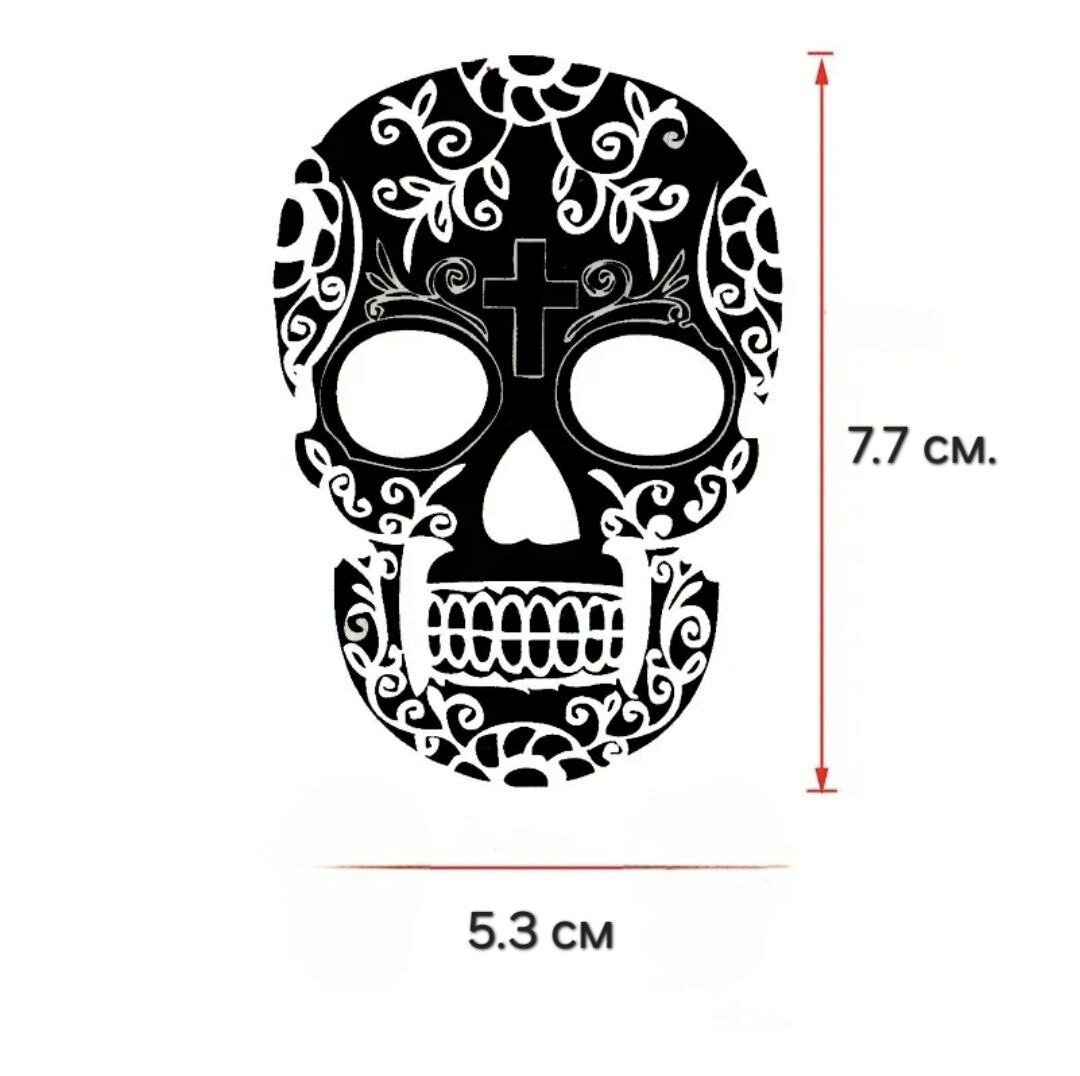 Купить Временная переводная татуировка Череп с узорами, несмываемая, 1 шт. в наборе, лист 10.5х6см.