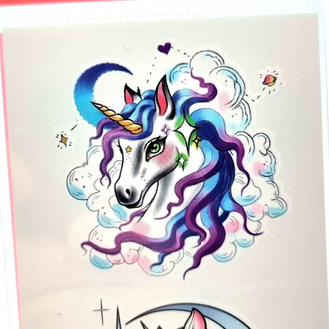 Временная переводная татуировка Радужный единорог, несмываемая, 1 шт. в наборе, лист 10.5х6см.