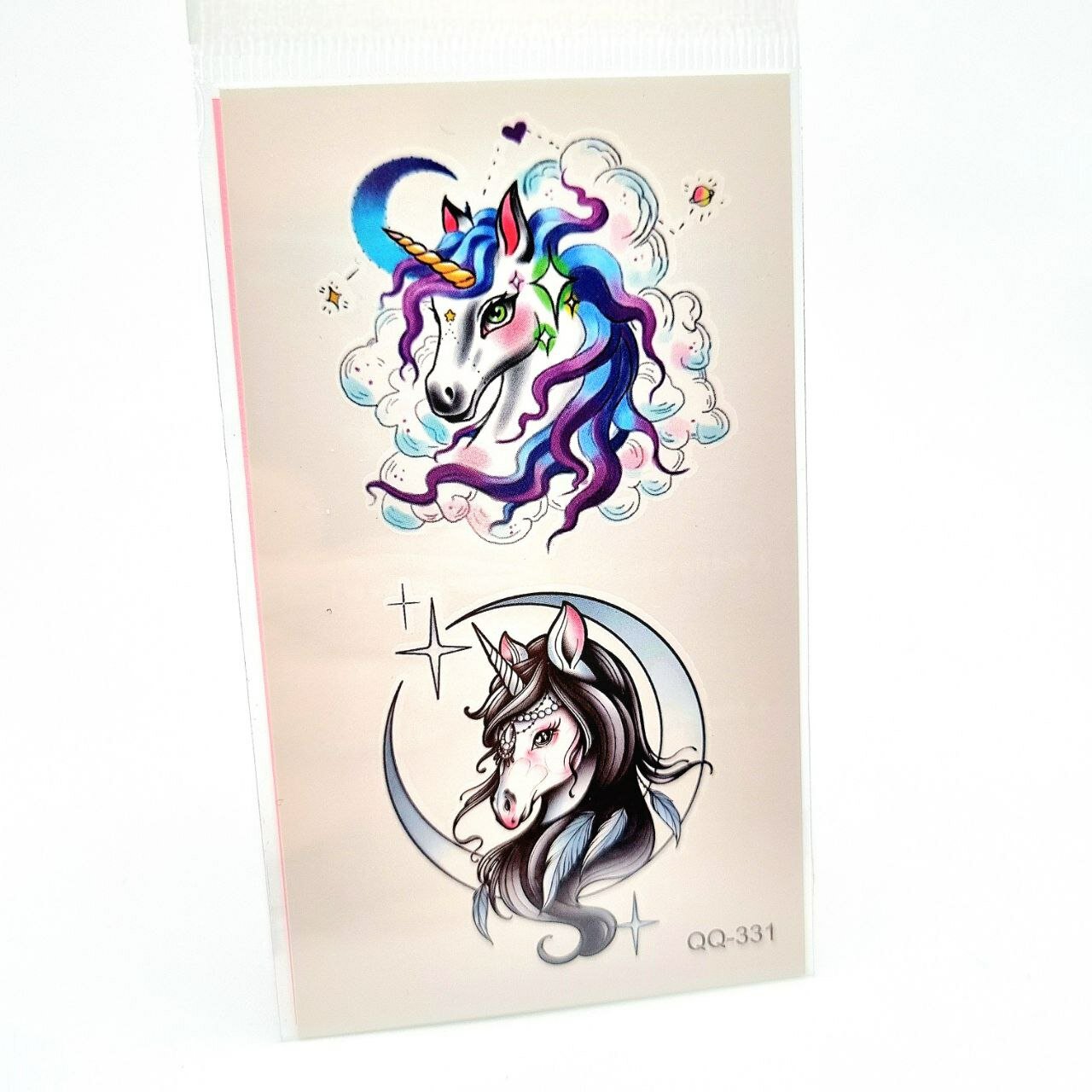 Купить Набор временных переводных татуировок Сказочные единорожки, несмываемые, 2 шт. в наборе на листе 10.5х6см.