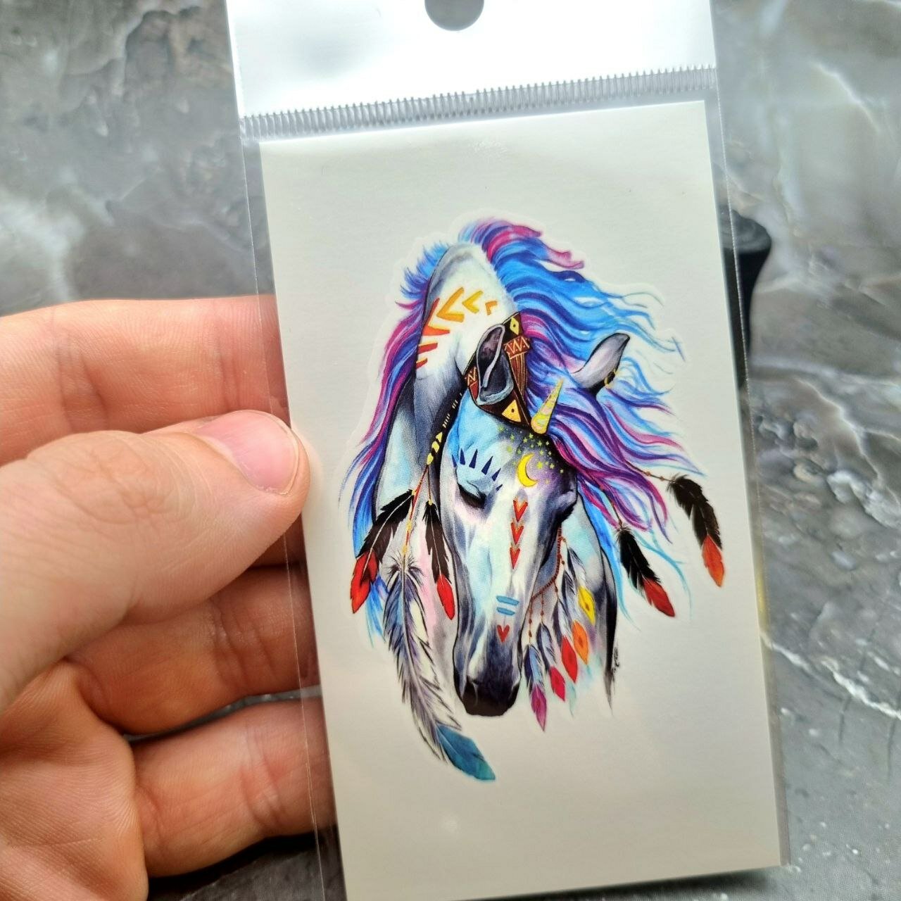 Купить Временная переводная татуировка Радужный единорог, несмываемая, 1 шт. в наборе, лист 10.5х6см.