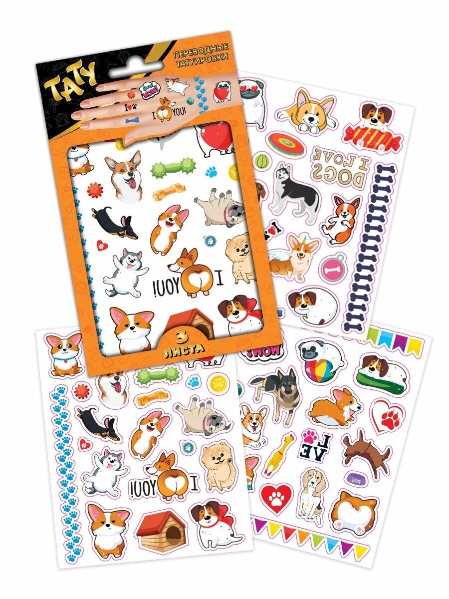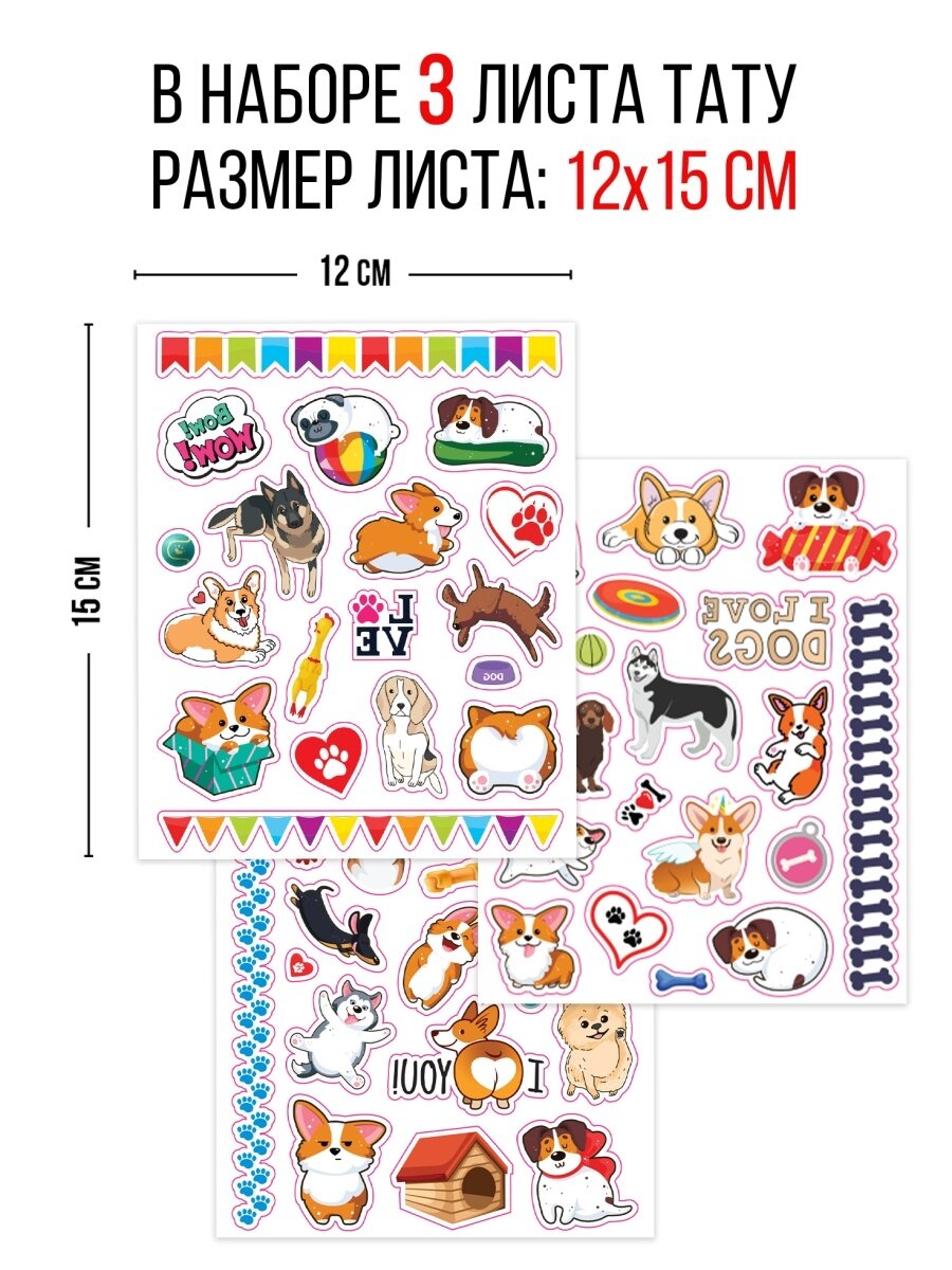 Купить Наклейки - татуировки "Корги и другие собачки", 3 листа