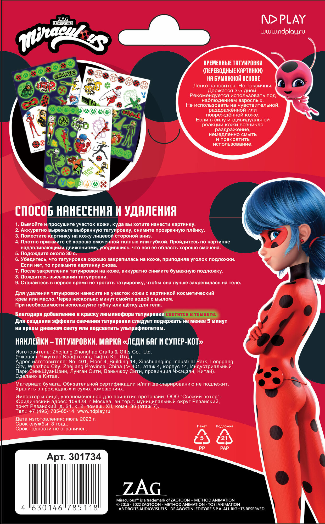 Купить Наклейки - татуировки светящиеся «Леди Баг и Супер-Кот», 3 листа, диз. 2 ND Play