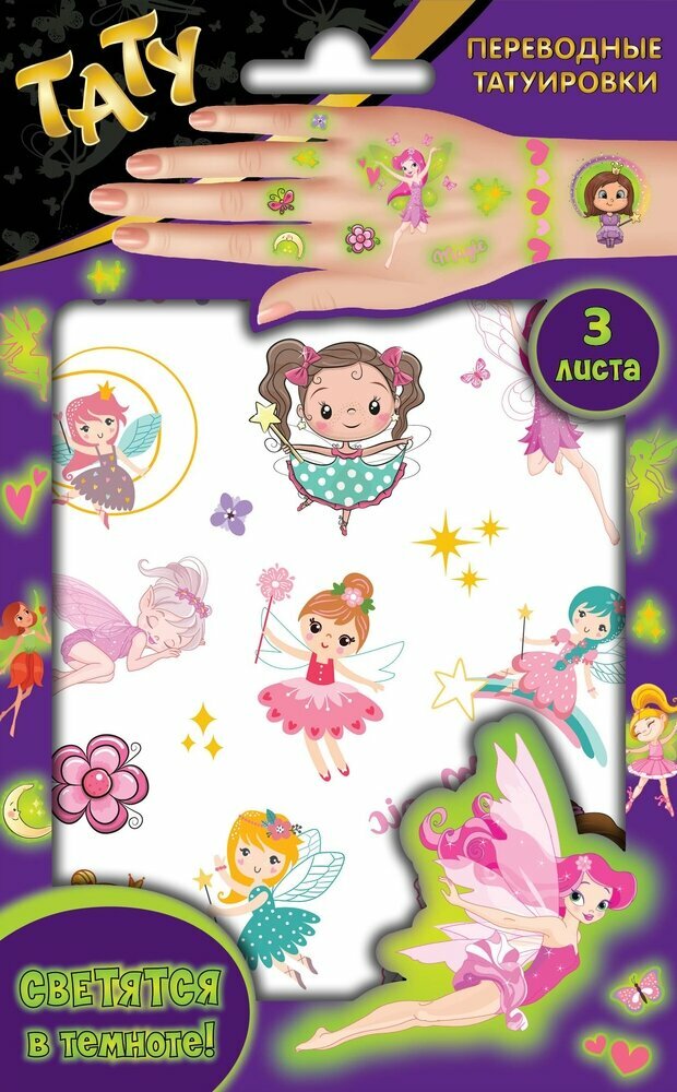 Купить Наклейки - татуировки светящиеся "Феи", 3 листа