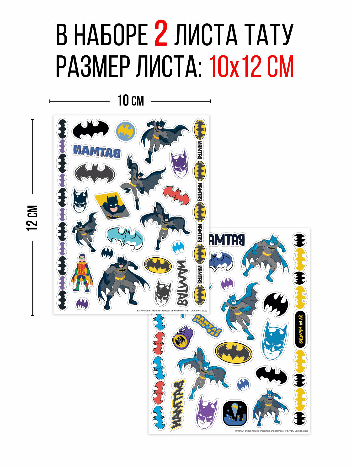 Наклейки - татуировки "Бэтмен", 2 листа, диз. 4 ND Play интересное: