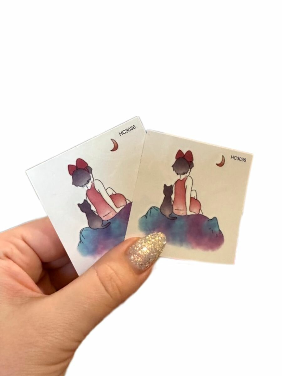 Купить Временная водостойкая татуировка Кики и Кот Дзи-Дзи из аниме Ведьмина служба доставки Хаяо Миядзаки 2 шт