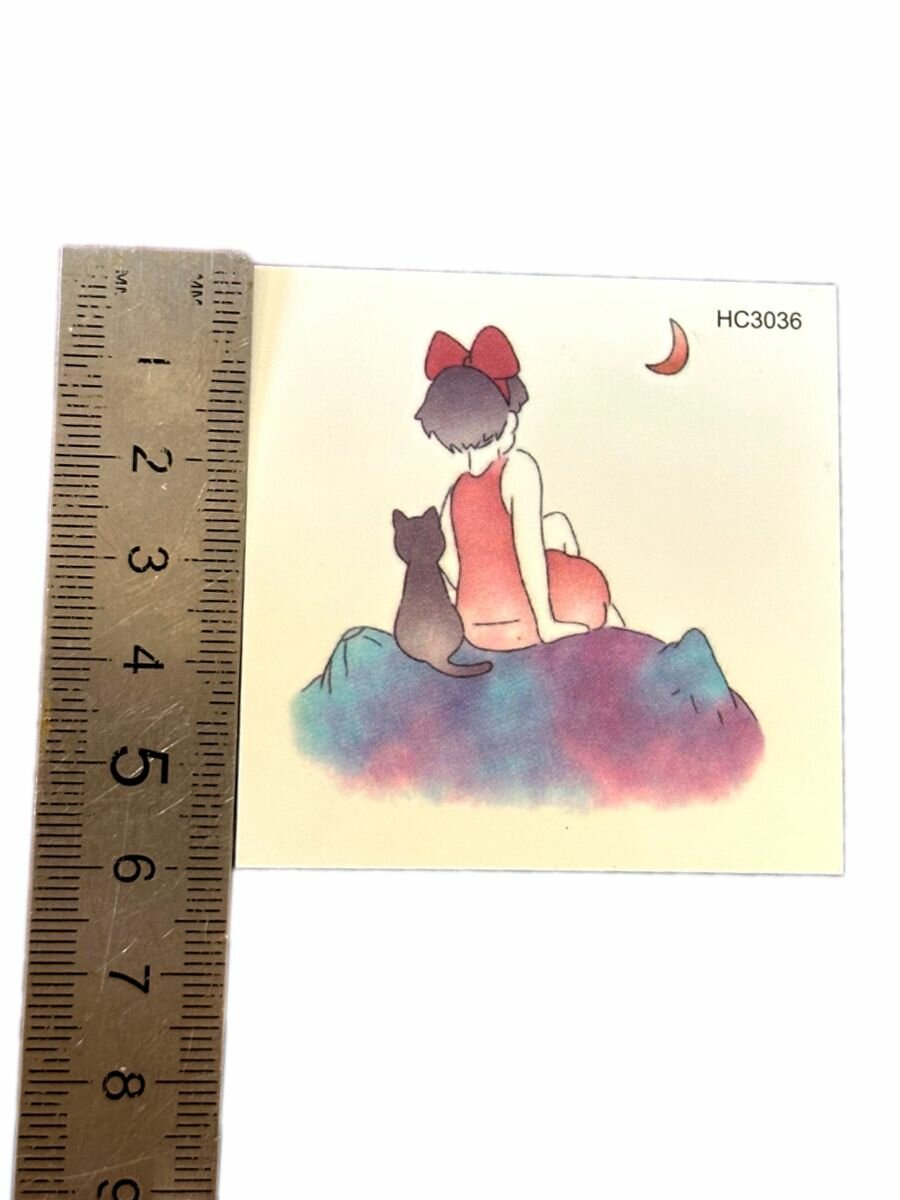 Временная водостойкая татуировка Кики и Кот Дзи-Дзи из аниме Ведьмина служба доставки Хаяо Миядзаки 2 шт интересное: