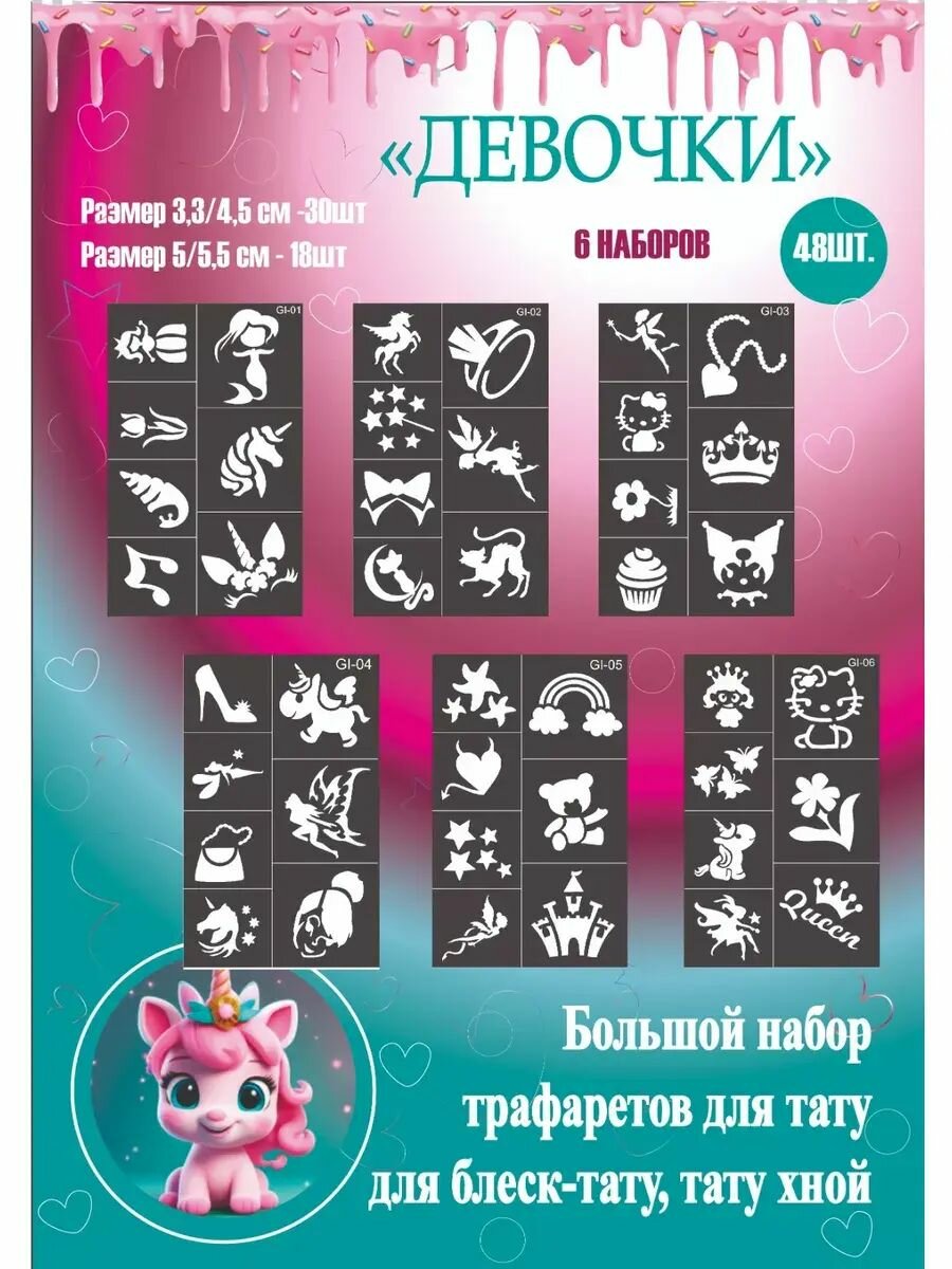 Набор трафаретов для тату девочки 6 листов 48 трафаретов интересное: