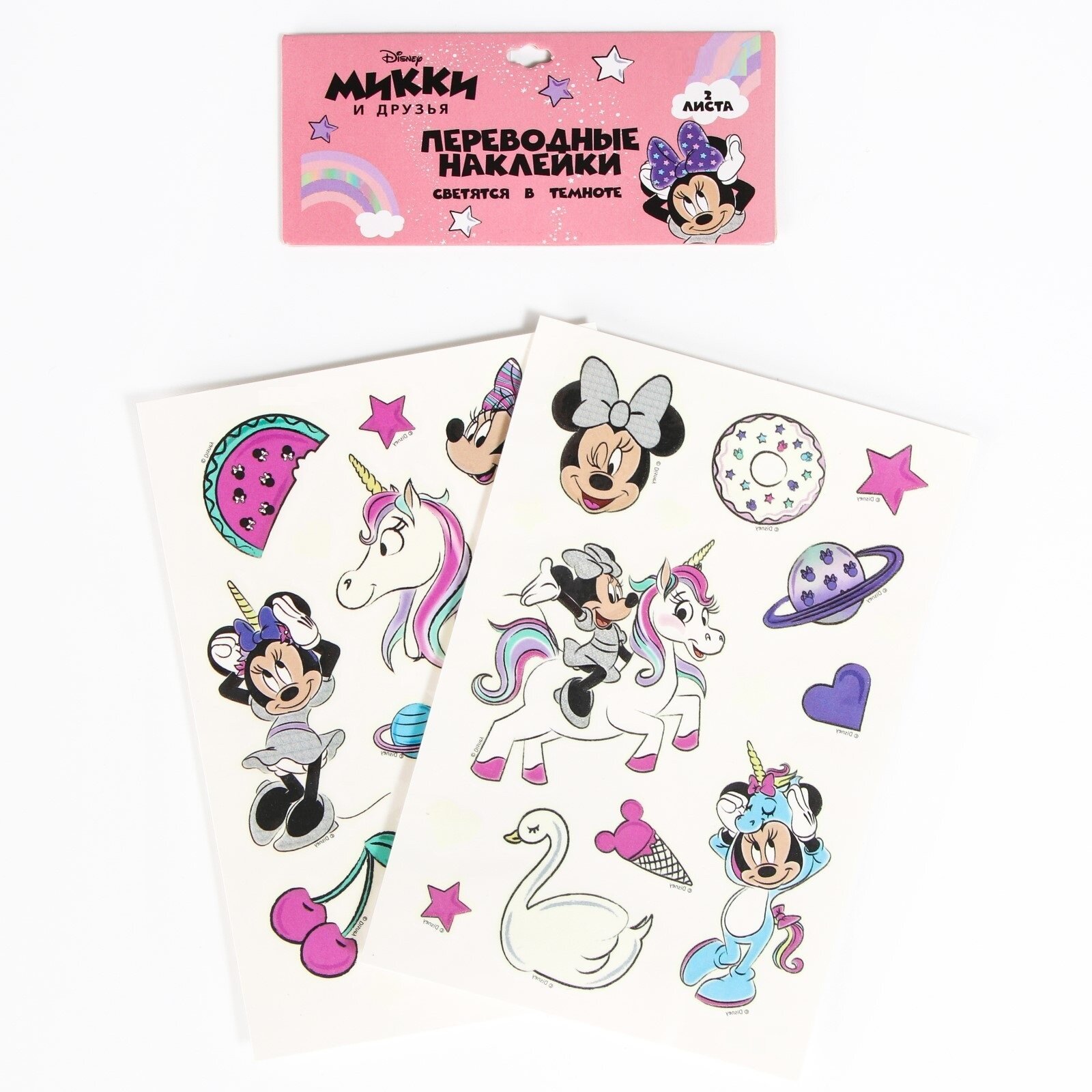 Временный татуировки детские "Мини маус и единорог" светятся в темноте, 20 шт интересное: