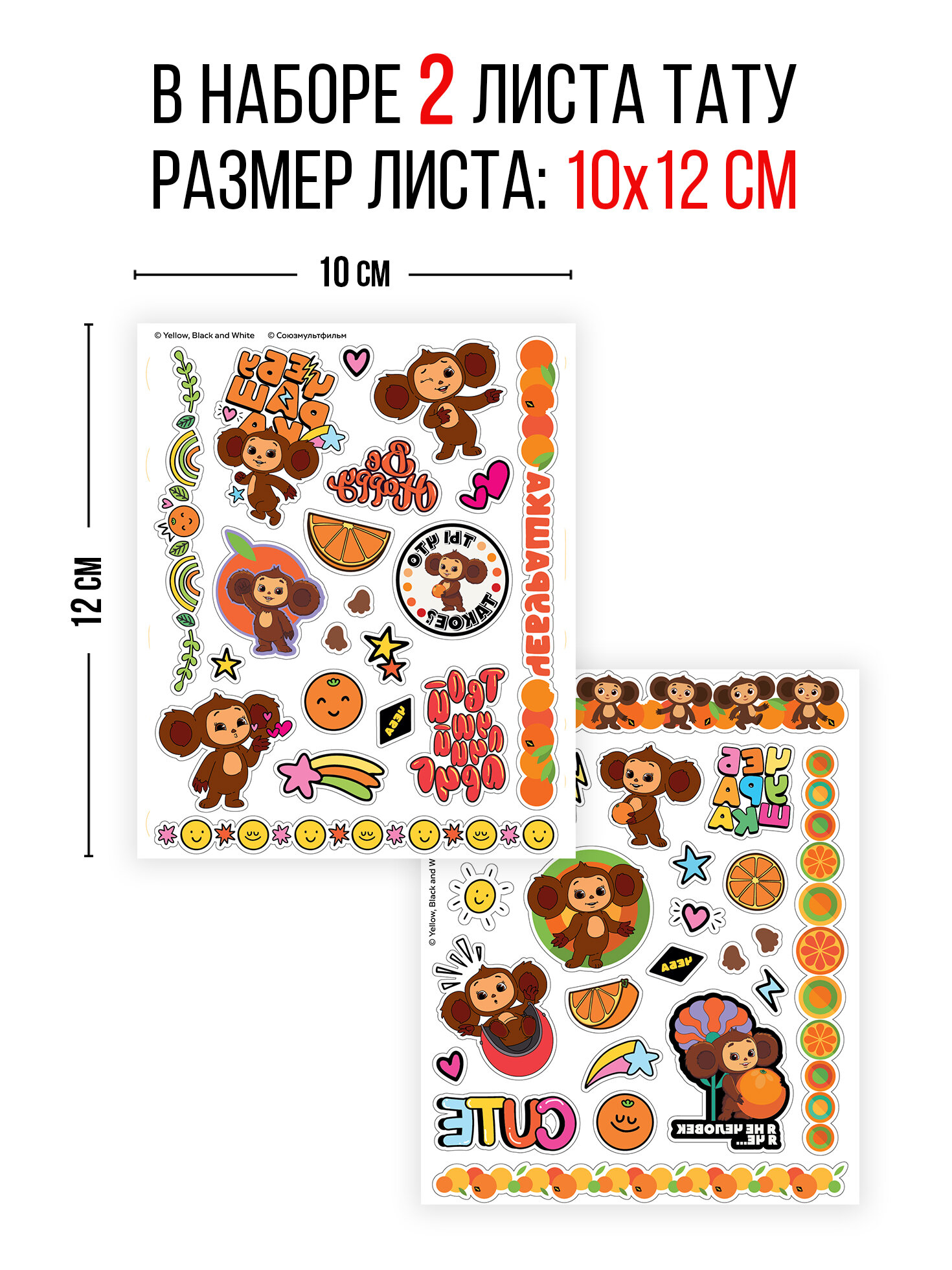 Купить Временные татуировки, Наклейки - татуировки "Чебурашка", 2 лист, диз. 2 ND Play